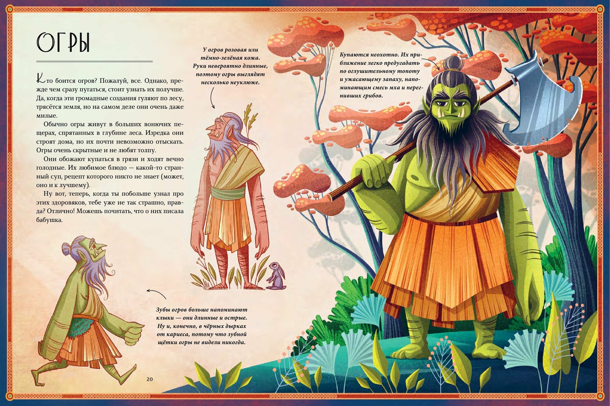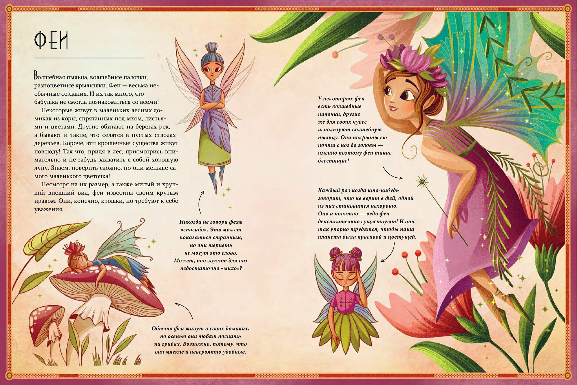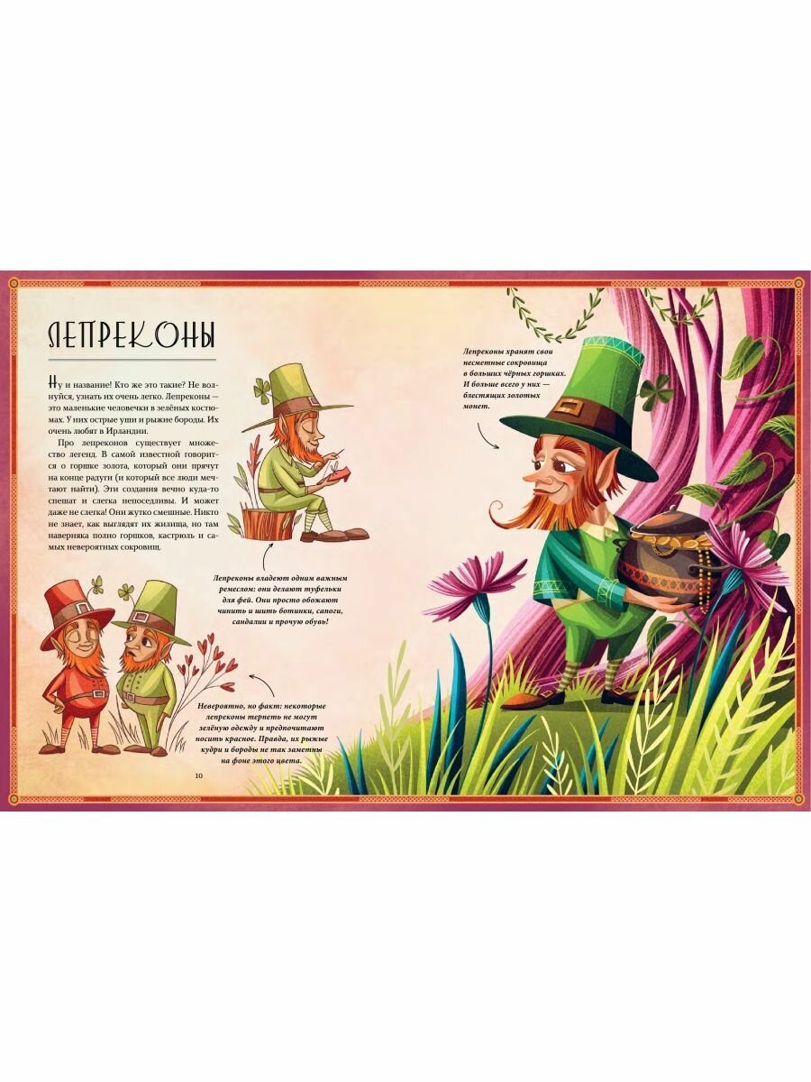 Очень яркая книга для детей, хотя и для взрослых будет интересна. Покупала на подарок. Ребёнок в восторге. В книги рассказывается о феях, ограх, нимфах, лепреконах. У каждого из них свои волшебные способности, рассказано про места обитания, внешний вид.