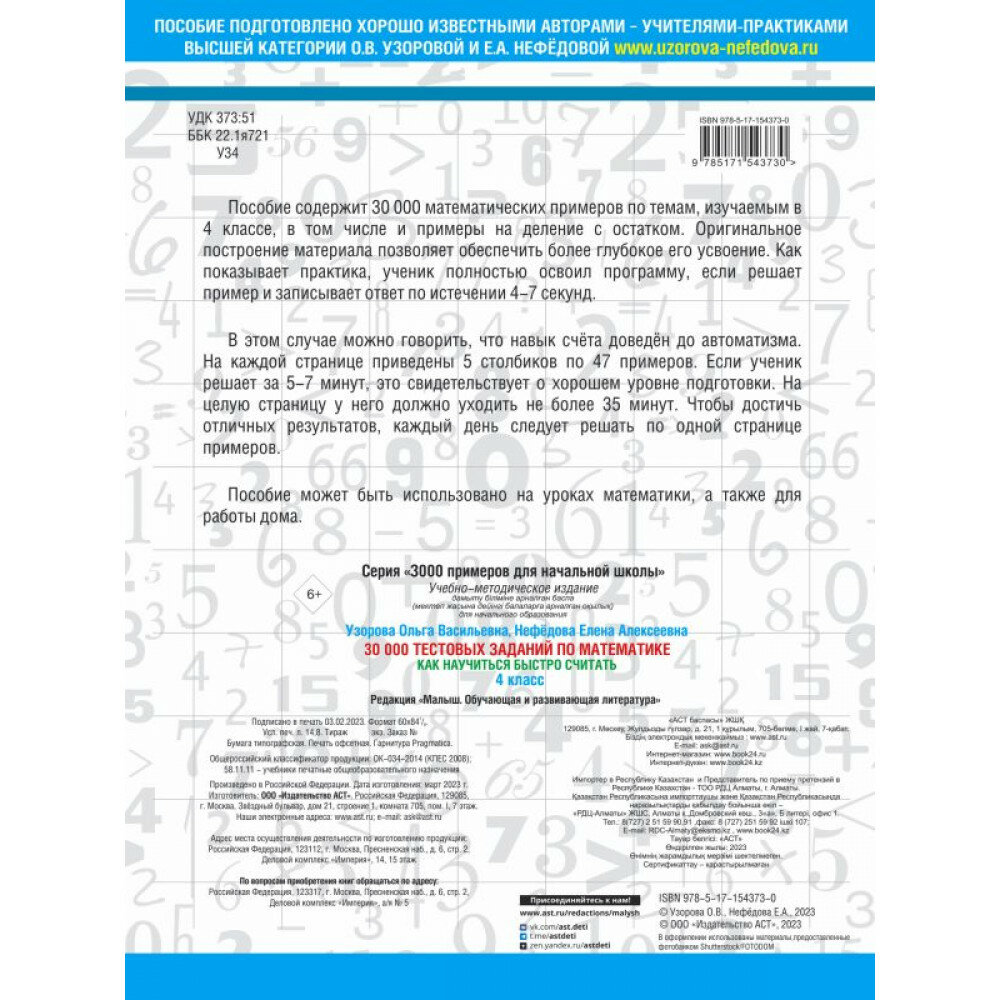 30000 примеров по математике. 4 класс (Елена Алексеевна Нефедова, Ольга Васильевна Узорова); АСТ, 2023