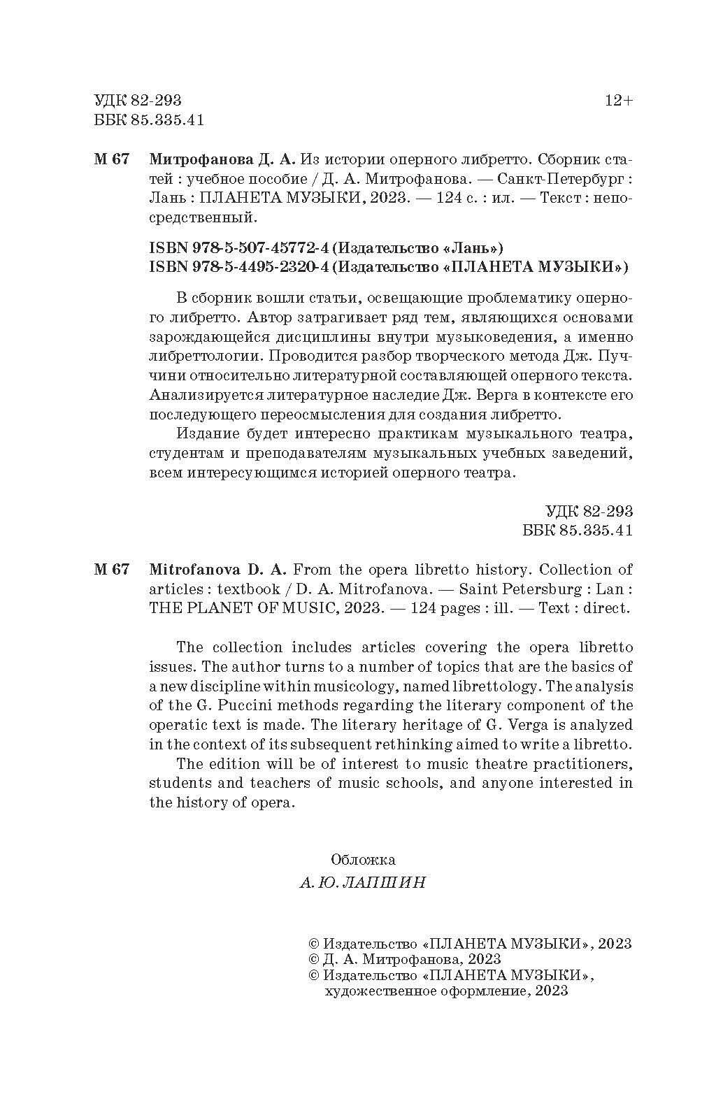 Из истории оперного либретто. Сборник статей. Учебное пособие (Митрофанова Дарья Анатольевна); Планета Музыки, 2023
