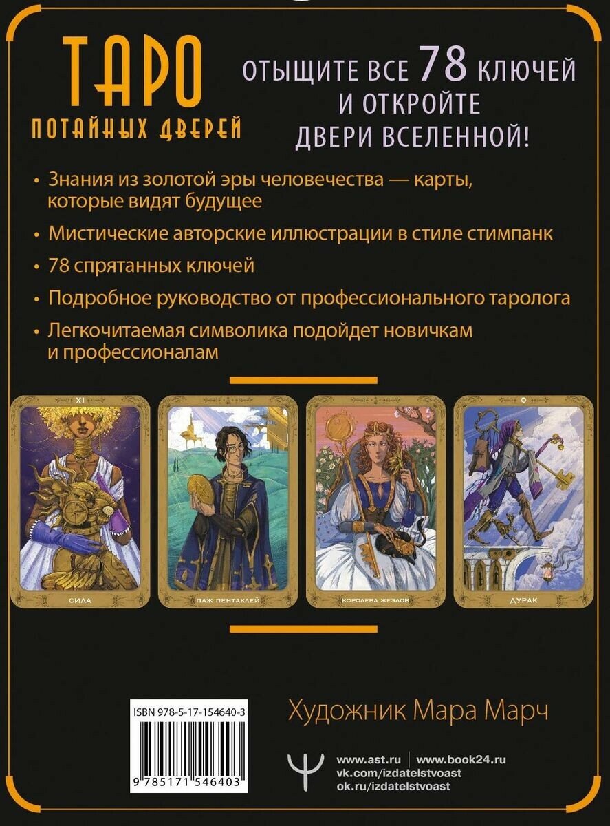 \"Таро Потайных Дверей. 78 ключей для ответов на все вопросы\" - это увлекательный и практический руководство по использованию карт Таро, которое поможет любому человеку получить ответы на свои вопросы и проблемы.