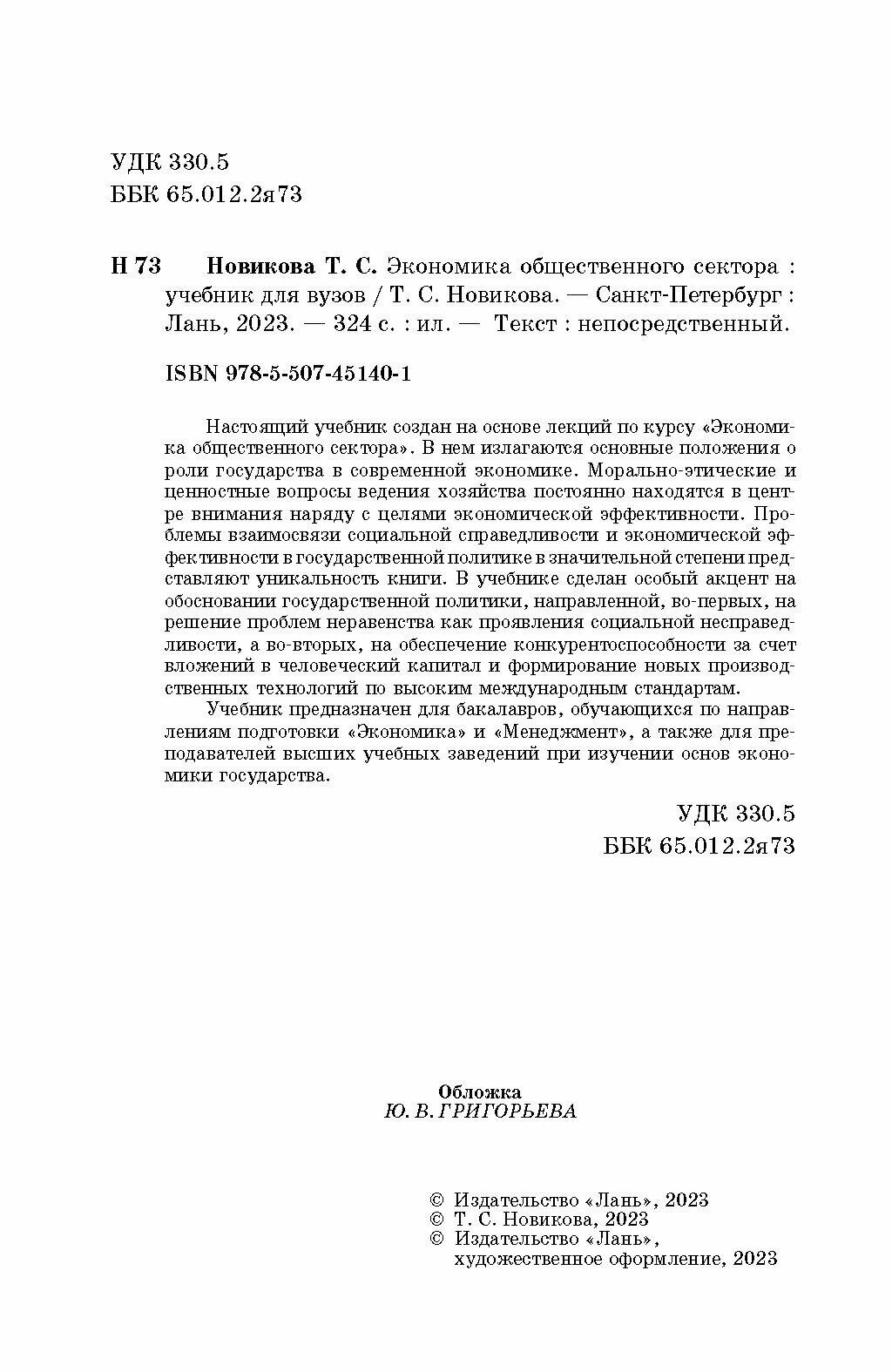 Экономика общественного сектора. Учебник для вузов. (Новикова Татьяна Сергеевна); Лань, 2023