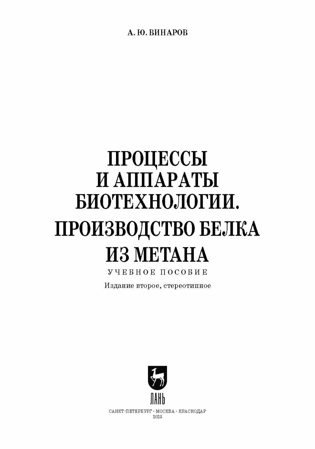 Процессы и аппараты биотехнологии. Производство белка из метана. Учебное пособие для вузов (Винаров Александр Юрьевич); Лань, 2023