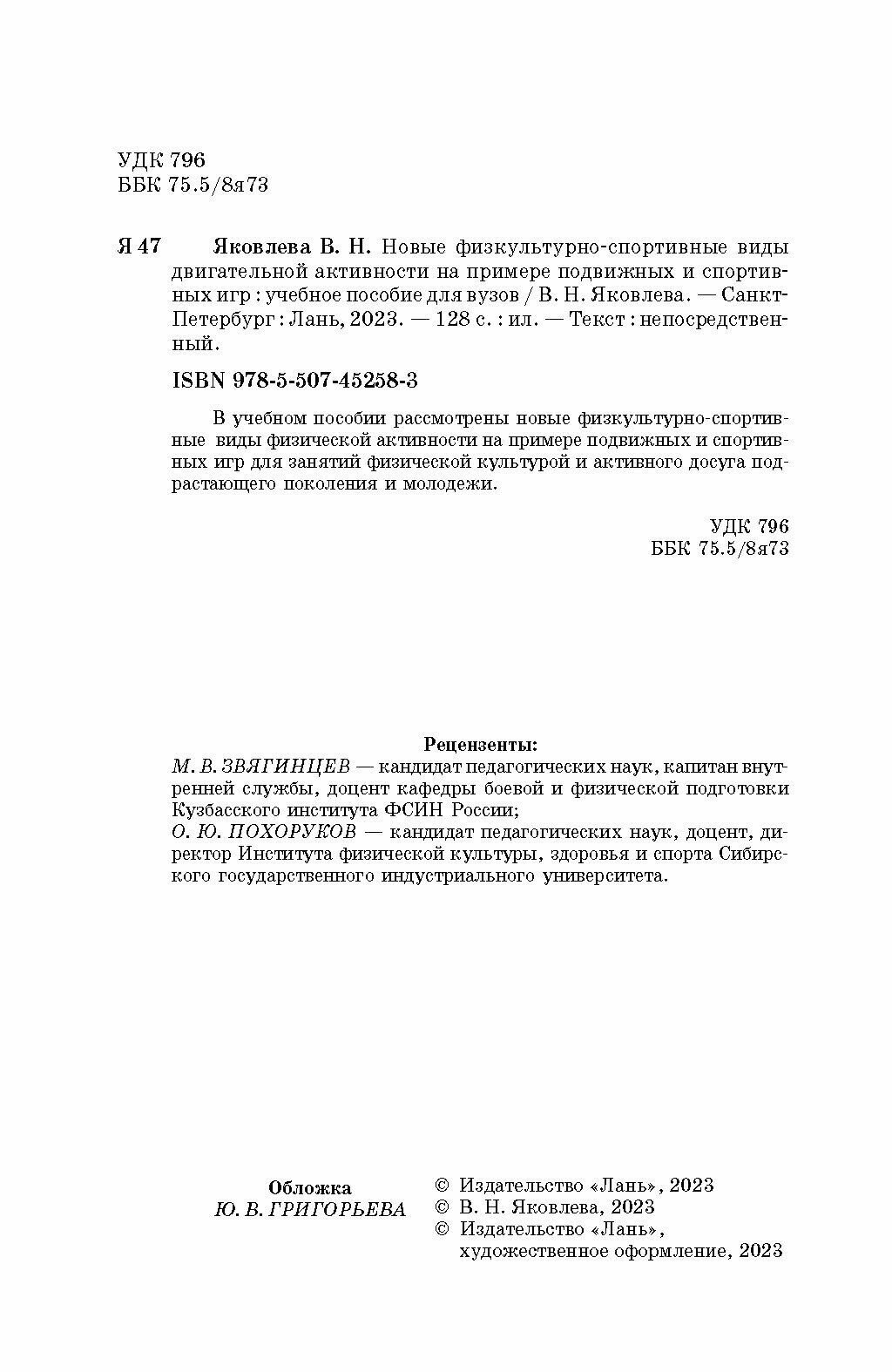 Новые физкультурно-спортивные виды двигательной активности на примере подвижных и спортивных игр. Учебное пособие для вузов (Яковлева Вера Николаевна); Лань, 2023