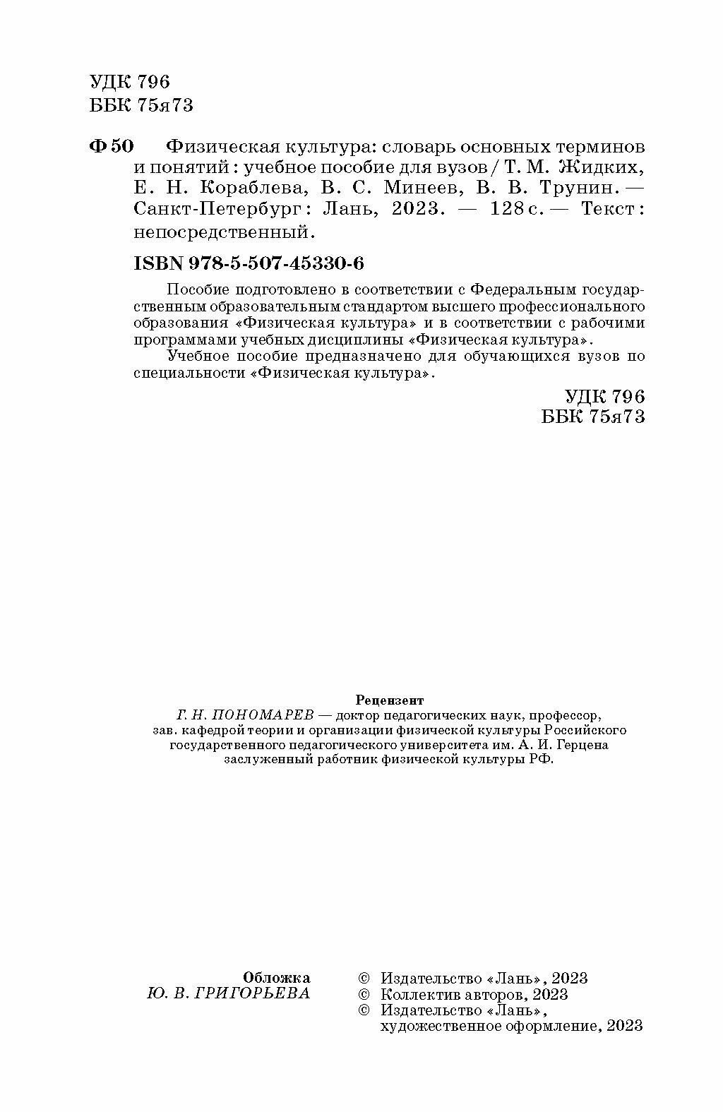 Физическая культура: словарь основных терминов и понятий. Учебное пособие для вузов (Кораблева Елена Николаевна, Жидких Татьяна Николаевна, Минеев Виктор Сергеевич); Лань, 2023