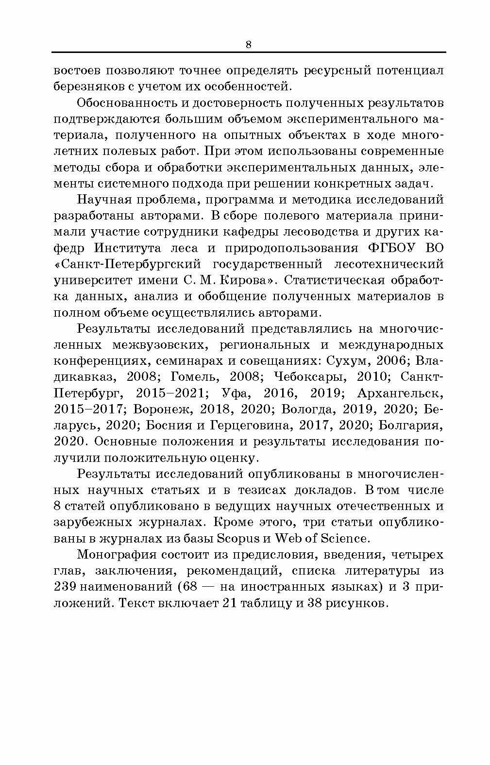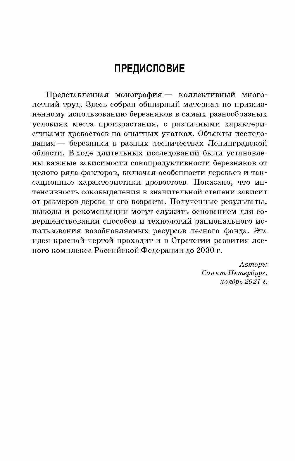 Монография содержит обширный материал по особенностям заготовки березового сока и определения сокопродуктивности березняков в зависимости от различных факторов, включая погодные условия и таксационные характеристики деревьев и древостоев. Представлены данные по интенсивности соковыделения в разные периоды суток деревьями разного возраста с разным диаметром ствола. Комплексные исследования охватывают пятилетний период наблюдений, результатом которых стали рекомендации производству и многоплановые новые знания о ресурсном потенциале березняков.