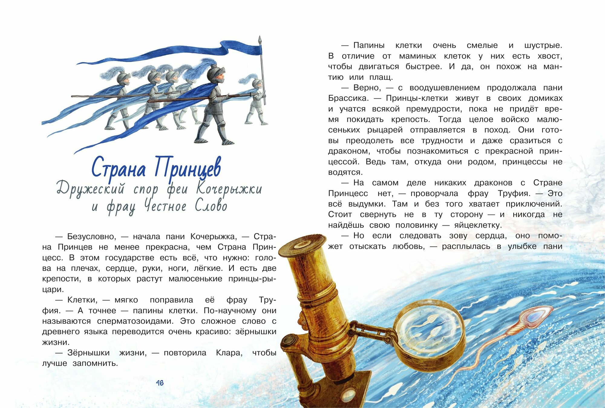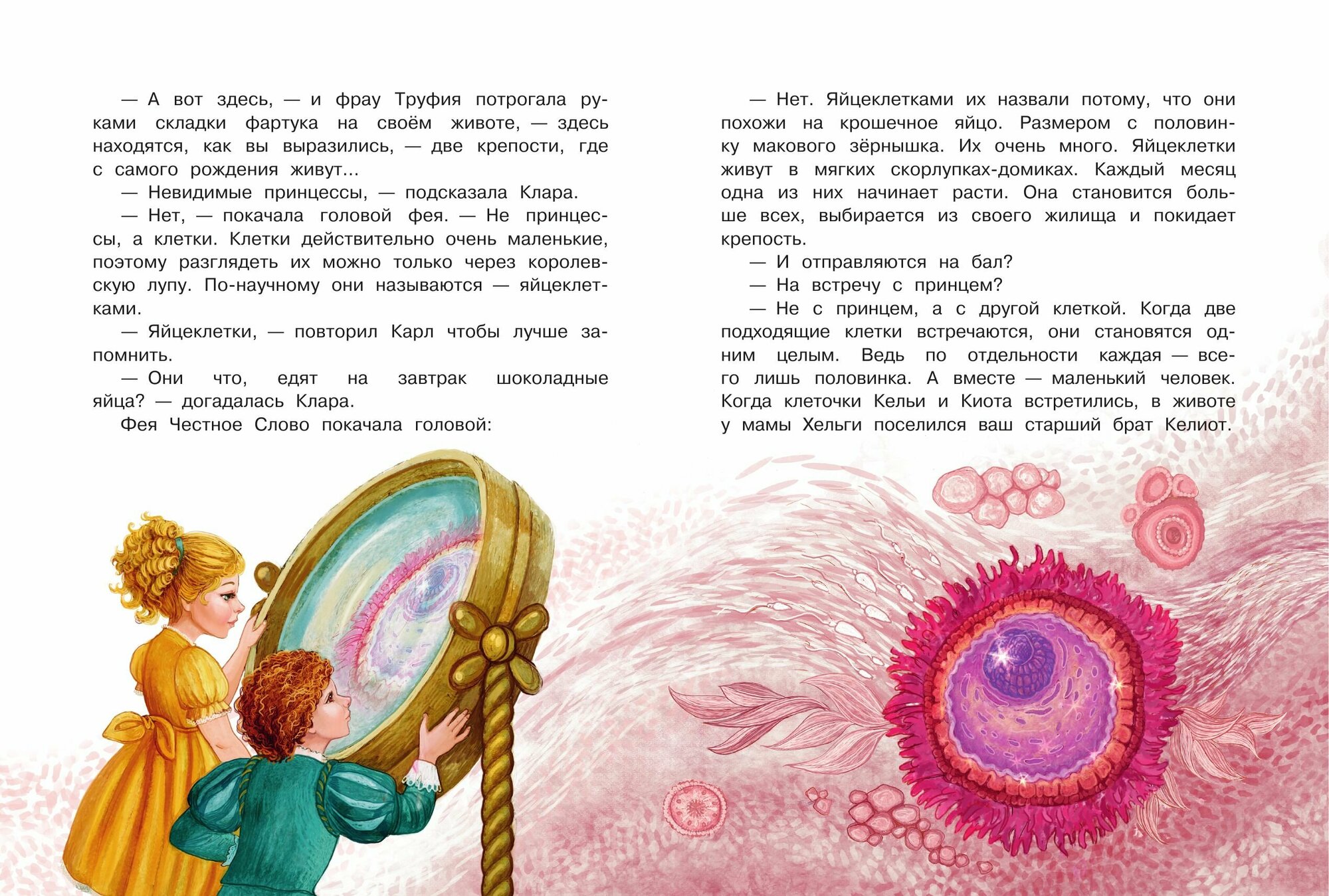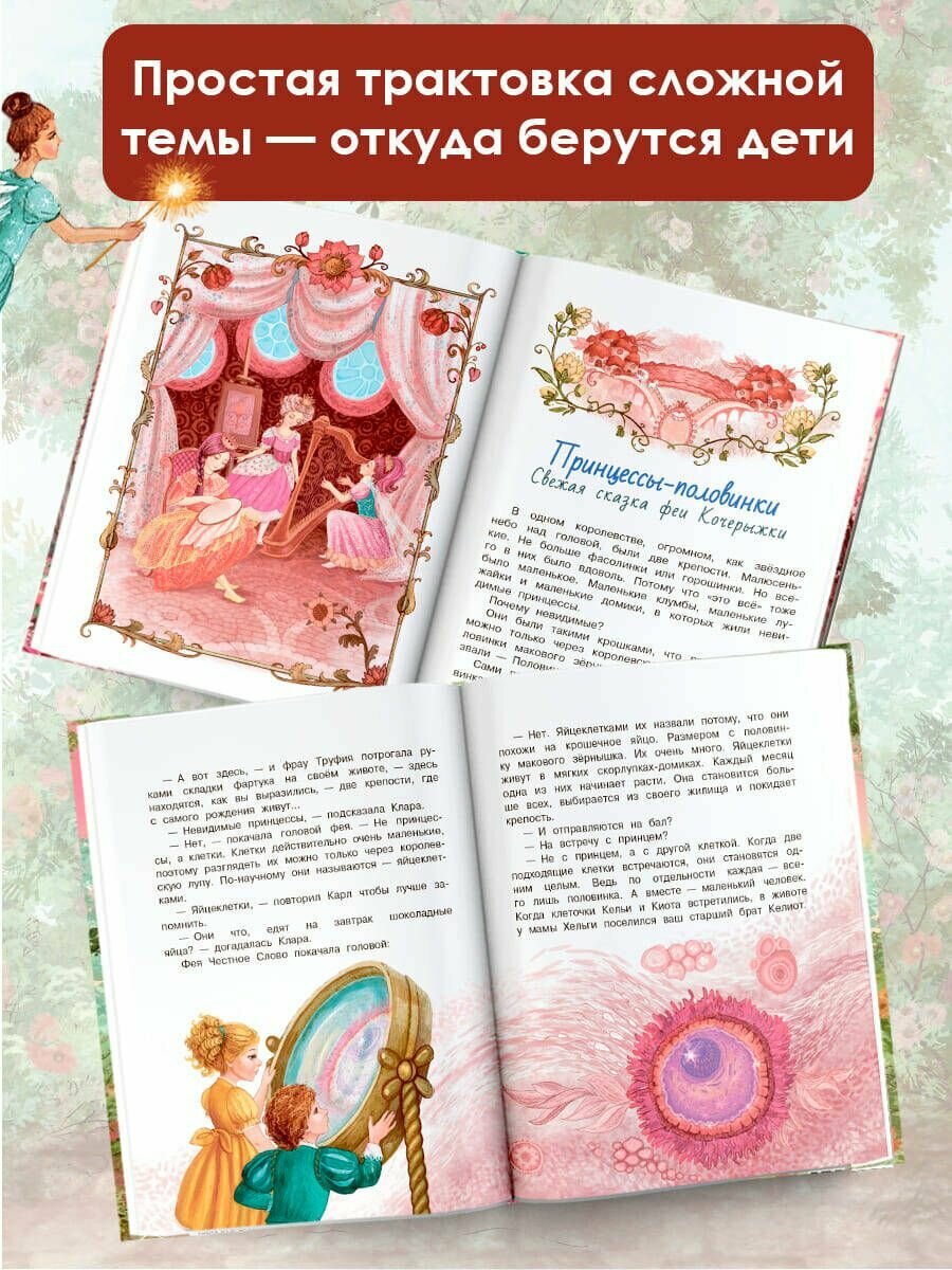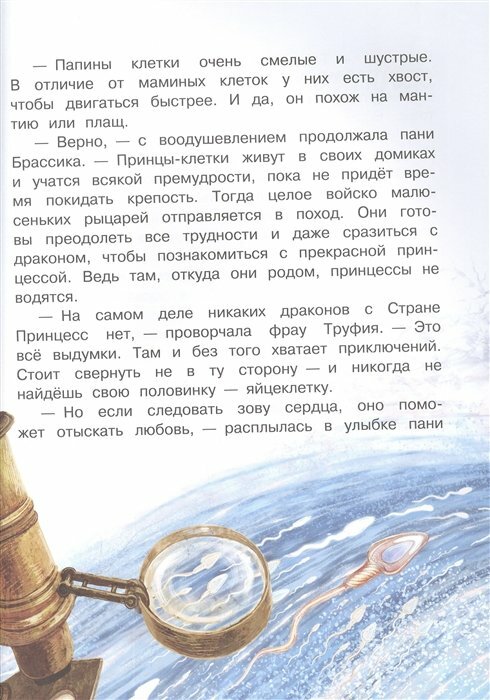 В книгу влюбились. Идеально подходит для совместного чтения. Очень много запомнилось цитат. Тема зарождения ребёночка описана очень красиво, тепло. Хочется перечитывать. Сказки трогают и детей и взрослых. Правда ведь, мы совсем не задумываемся, что внутри нас целый мир, и сколько приключений приходится пережить клеточкам, чтобы встретить друг друга. Ведь человек - это целая вселенная, а зарождение новой жизни - настоящее чудо, к которому мы относимся как к обыкновенной части жизни, но это невероятно. Очень понравилась и сказочная часть и приложение - ответы на вопросы маленьких почемучек. Иллюстрации захватывающие. Песенки и стихотворные паузы между главами помогают маленькому слушателю не устать и усвоить информацию постепенно. В общем, это самая красивая книга о рождении малыша. Одна обложка чего стоит))