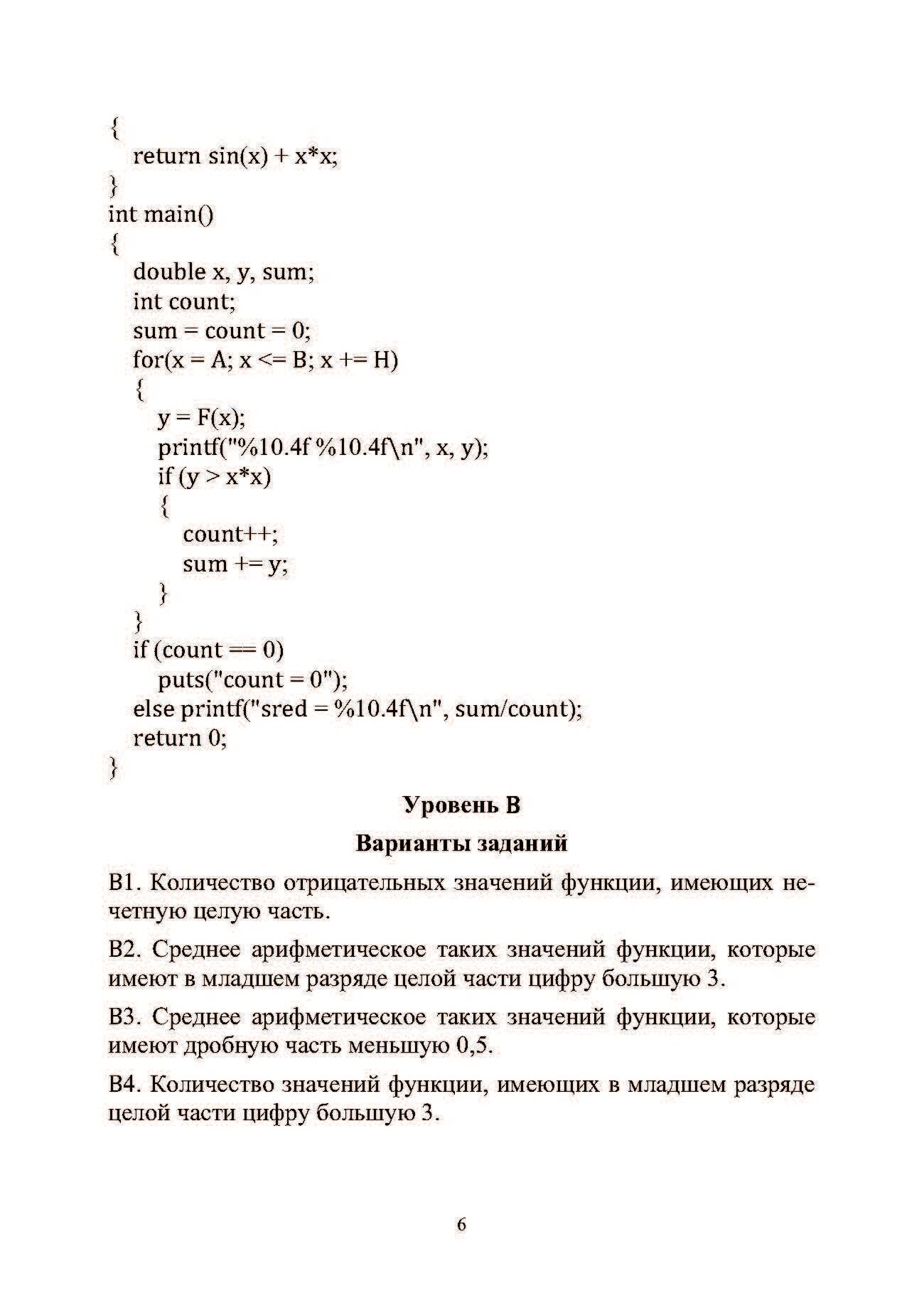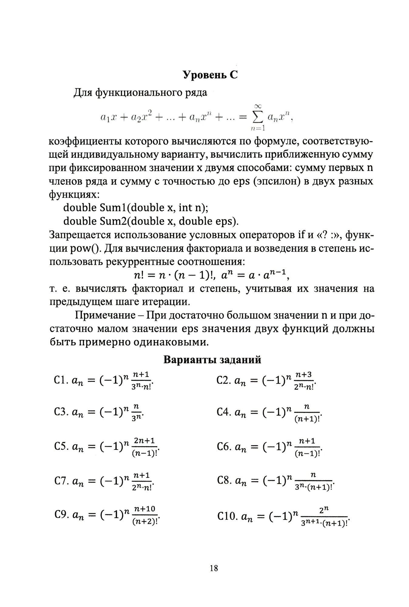 В данном лабораторном практикуме по программированию приводятся варианты индивидуальных заданий для лабораторных работ по таким темам, как «Условные операторы», «Циклы», «Одномерные массивы», «Матрицы», «Строки», «Структуры данных», «Текстовые и двоичные файлы», «Линейные динамические структуры данных», «Бинарные деревья», «Биты памяти». В лабораторных работах задания разделены на три уровня сложности (уровни A, B и C) — от простого к сложному. Составлять программы можно на разных языках программирования, но задания и примеры ориентированы на язык программирования Си. Данный практикум является дополнением к книге автора «Программирование на языке Си». Опираясь на указанную книгу, можно выполнить лабораторные работы, представленные в данном практикуме, любого уровня сложности.