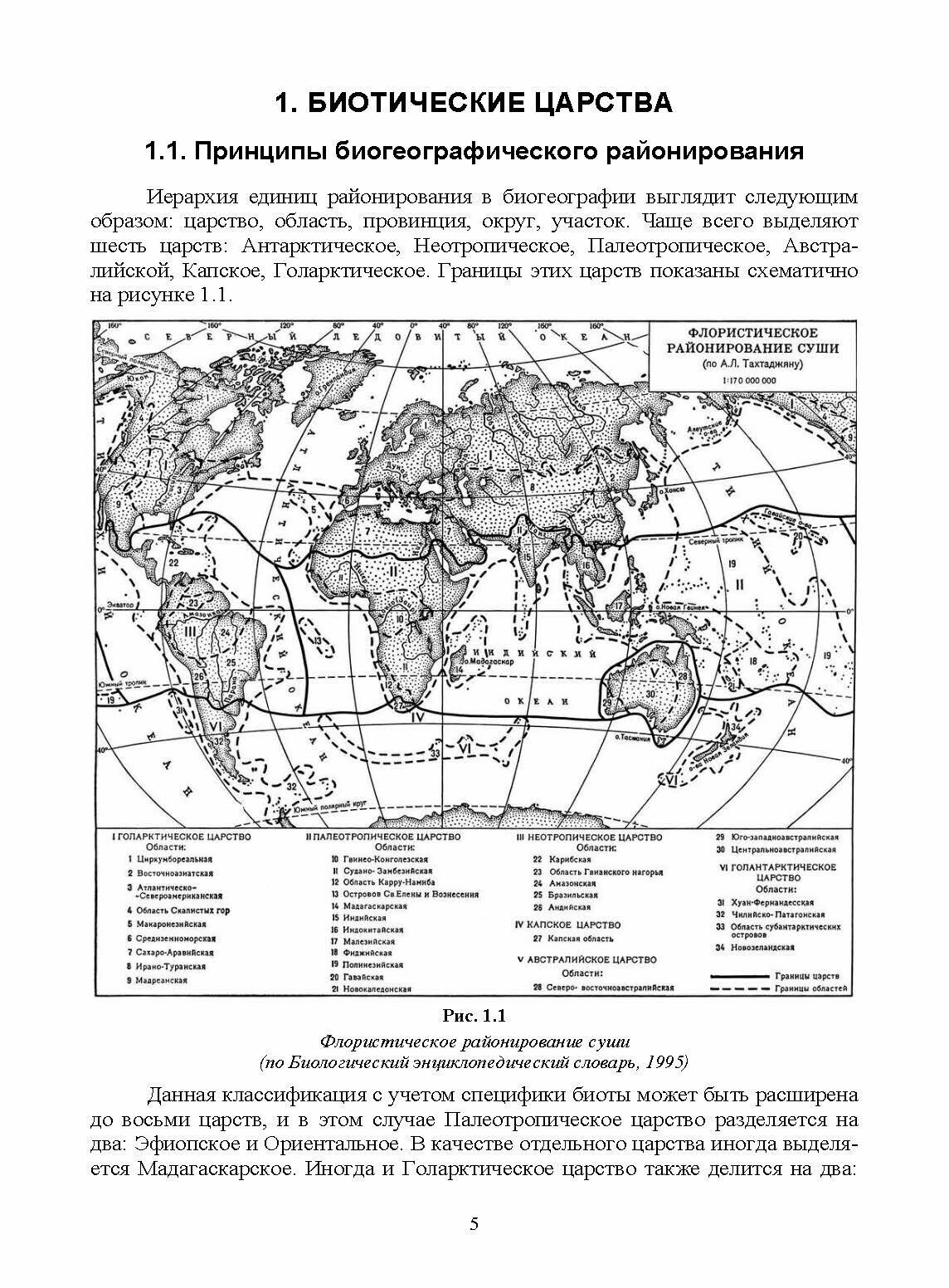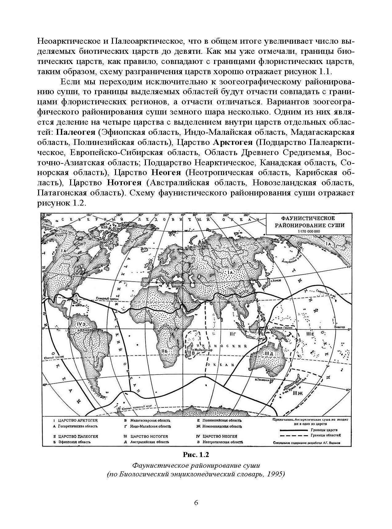 Рассматриваются основные положения современной биогеографии: принципы районирования территории суши 3емного шара, биотические царства и их характерные представители;