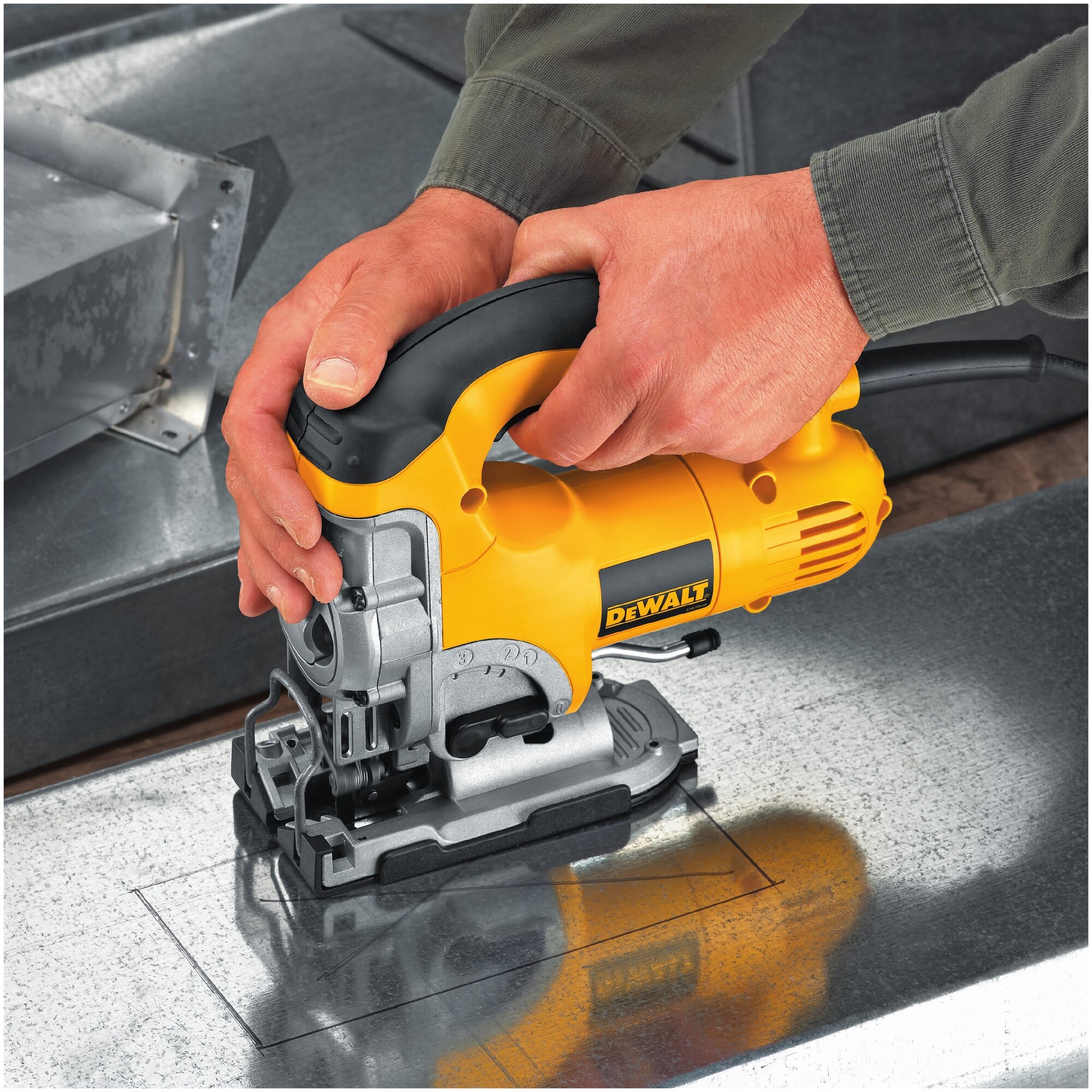 Лобзик DeWalt DW331K обладает впечатляющей мощностью и его возможности обширны. В частности с его помощью можно без проблем резать стальные пластины толщиной 12 мм, пластины из цветных металлов толщиной 30 мм и деревянные заготовки любой плотности - на глубину до 135 мм.