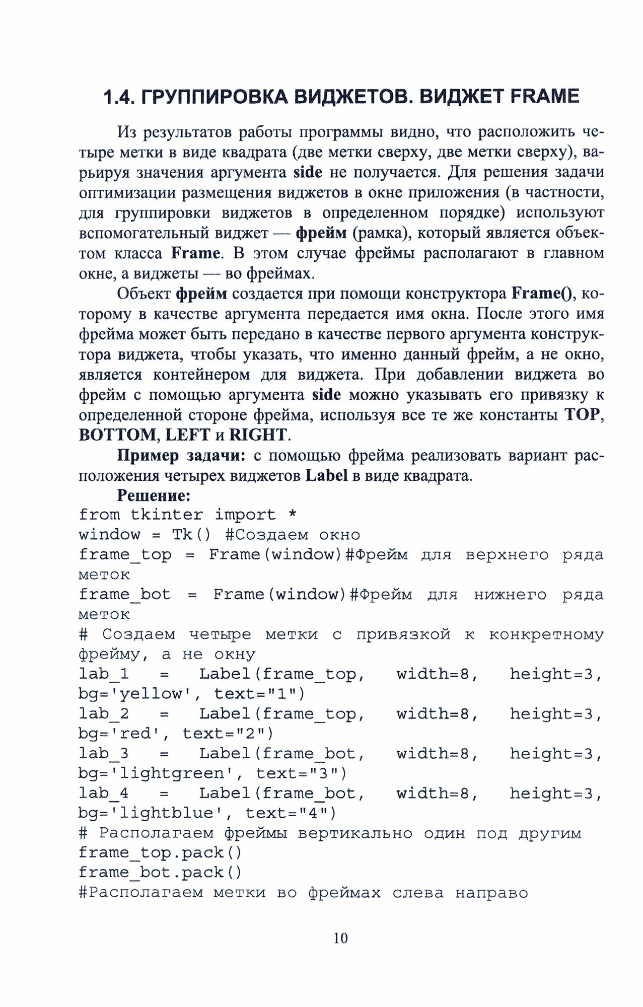 Настоящее пособие содержит основные сведения о создании приложений на языке Python с графическим пользовательским интерфейсом с помощью библиотеки Tk. Рассматриваются основные типы элементов, управляющих работой приложения, и способы их программной реализации. Даются понятия визуального проектирования и событийного программирования. Приводятся многочисленные практические упражнения с примерами программного кода, помогающие понять основные способы практической реализации графических пользовательских интерфейсов. Рассматриваются возможности библиотеки Tk по созданию компьютерной анимации. В пособии содержатся краткие теоретические сведения, упражнения и примеры программ с подробными комментариями, а также задания для самостоятельной работы. В учебном пособии последовательно вводится понятийный аппарат, формулируются основные объекты, приводятся примеры программ на языке Python.