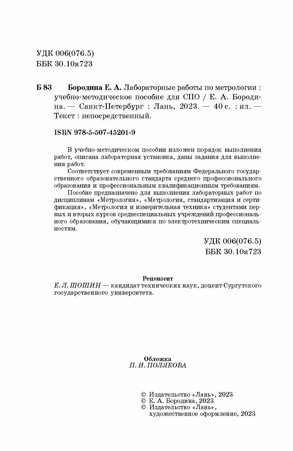 Сервис сравнения цен СкидкаГИД предлагает сравнить цены на товар «Книга: Лабораторные работы по метрологии. Учебно-методическое пособие (Бородина Екатерина Александровна); Лань, 2023»