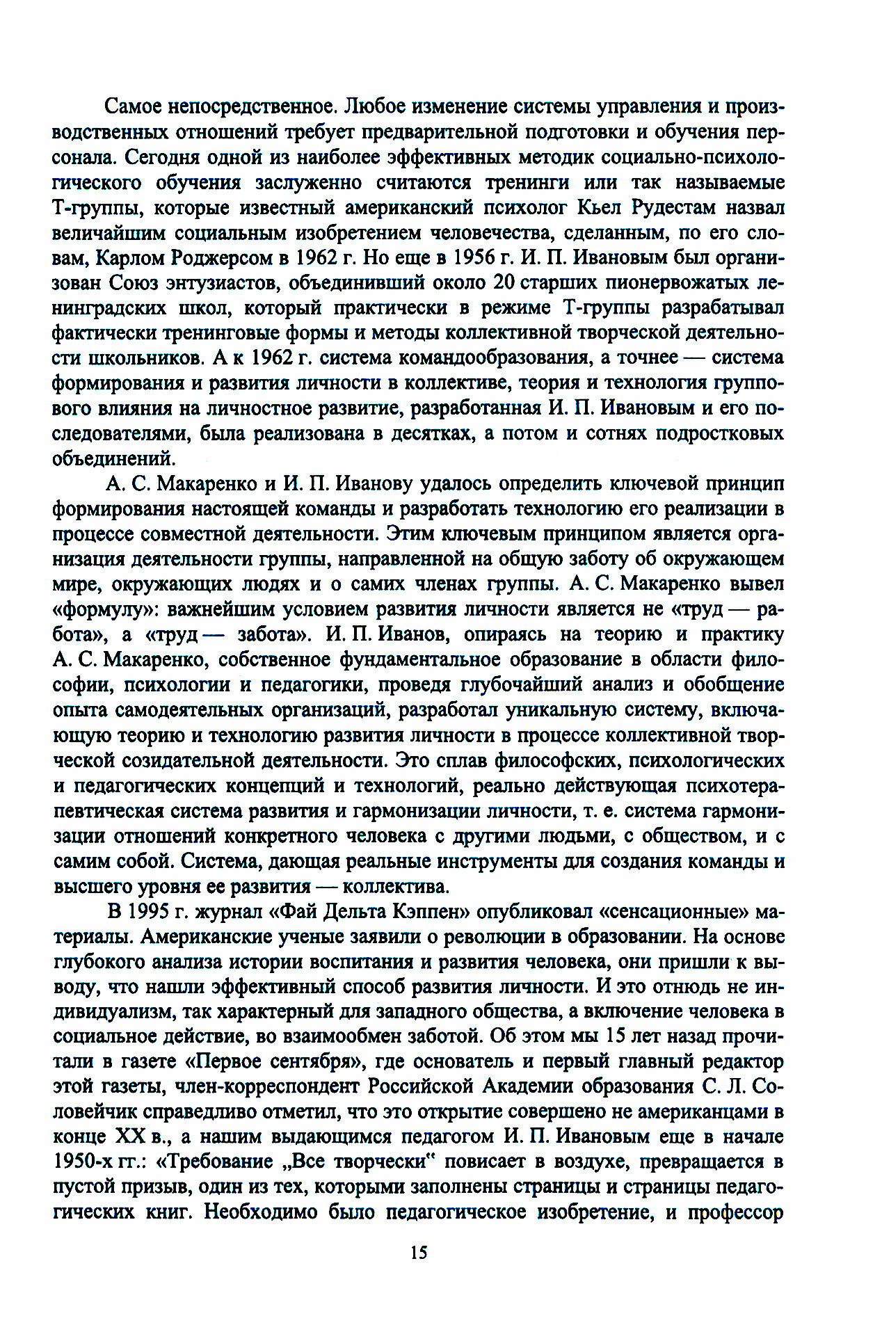 Предлагаемое учебное пособие посвящено одной из самых популярных и практически ориентированных тем в социальной психологии последних лет - теме командообразования. Педагогическая ценность его заключается в гармоничном сочетании основ теории командообразования, исторических фактов и разнообразных практикумов в форме технологий проведения дискуссий, деловых игр, тестов и опросников и т. д. Отличительной особенностью данного пособия является убежденная позиция авторов о связи личностного развития и взаимодействия в команде, о развитии индивидуальности человека во взаимоотношениях с людьми в процессе командной работы.