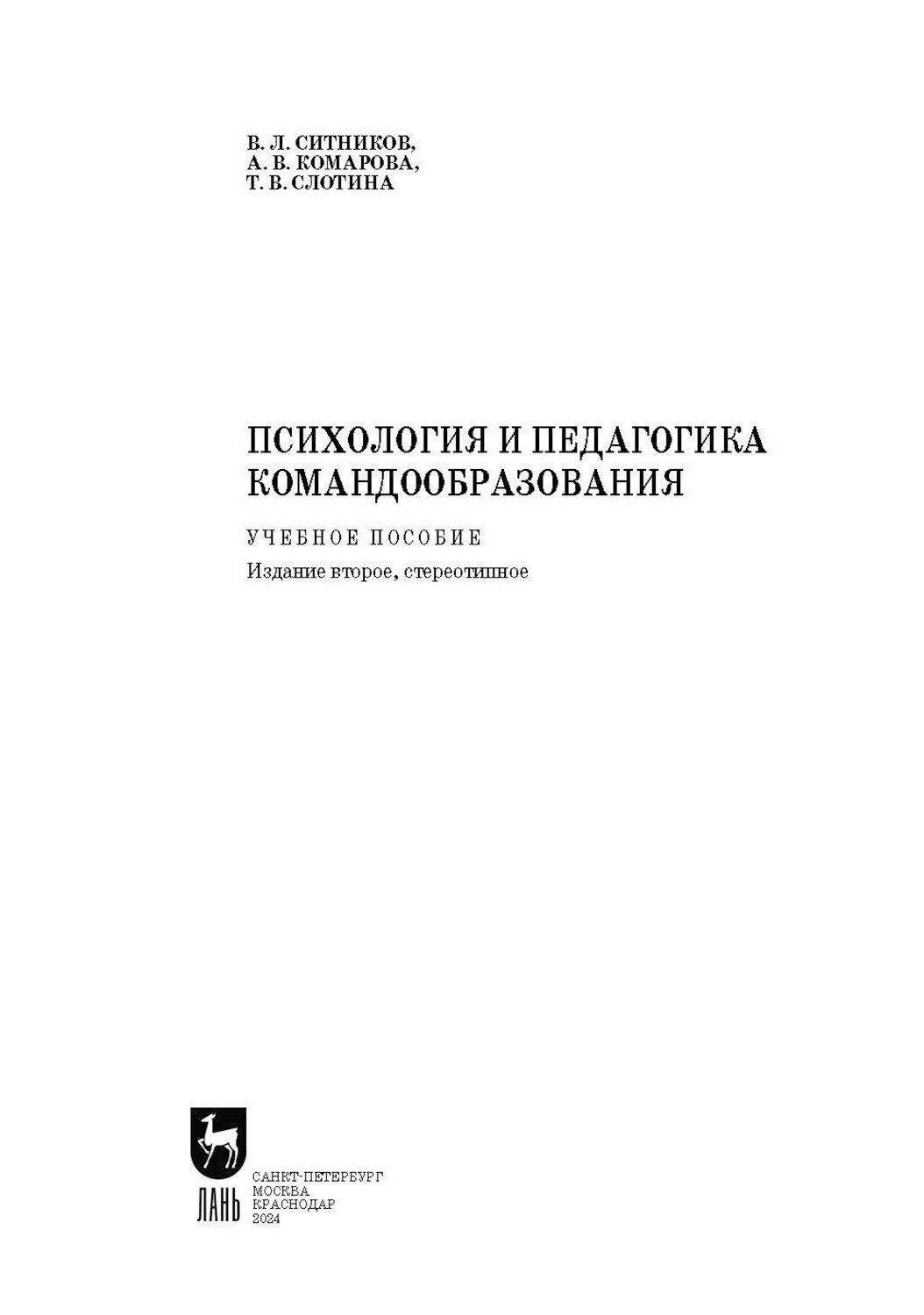 Психология и педагогика командообразования. Учебное пособие (Ситников Валерий Леонидович, Слотина Татьяна Викторовна, Комарова Александра Владимировна); Лань, 2023