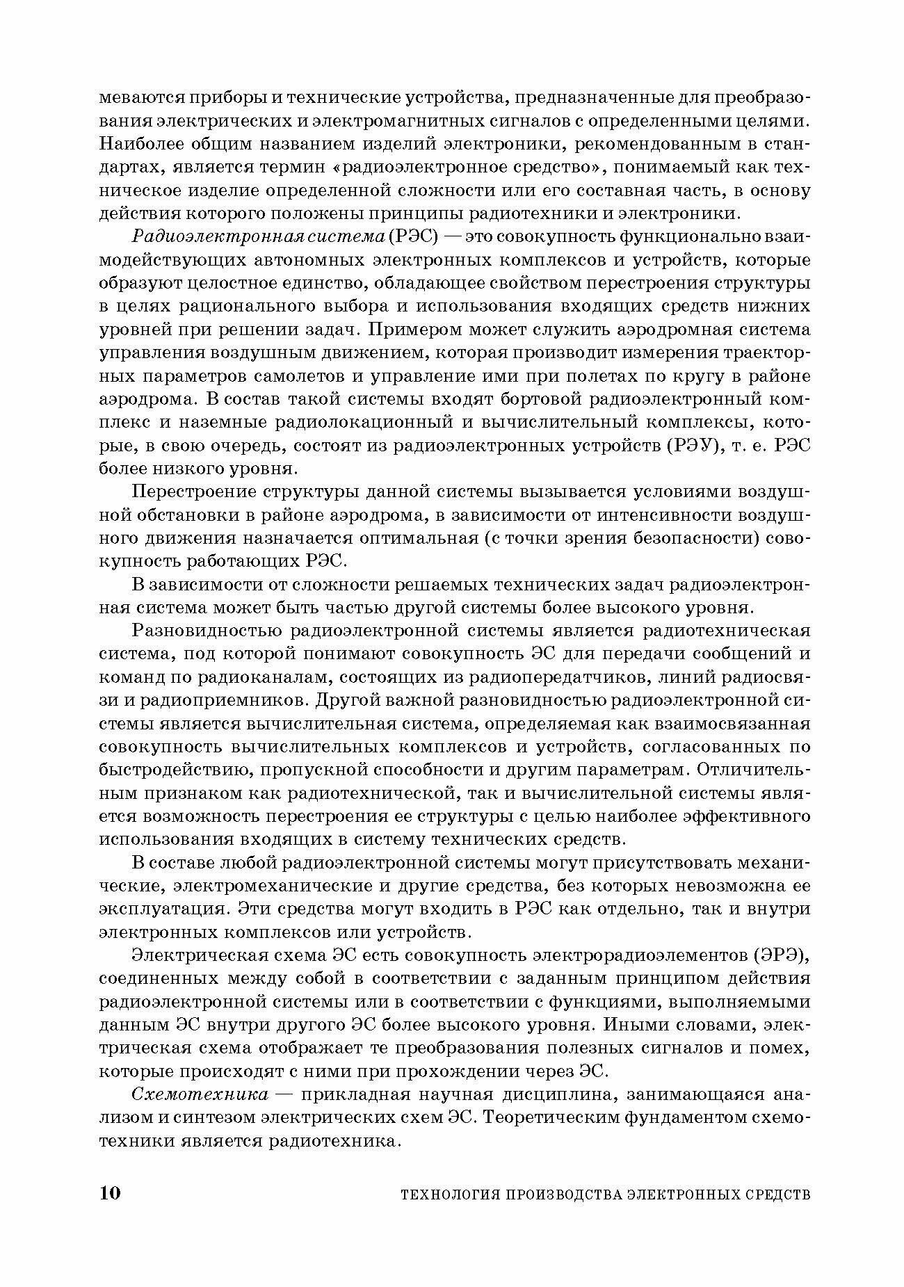 Учебное пособие посвящено вопросам технологии производства электронных средств (ЭС) для радиосвязи, радиовещания, телевидения, радиолокации, радионавигации и других направлений науки и техники. Разделы книги изложены подробно и логично, основываются на глубоком знании электроники, радиотехники, системотехники, физико-химических положений технологии ЭС.