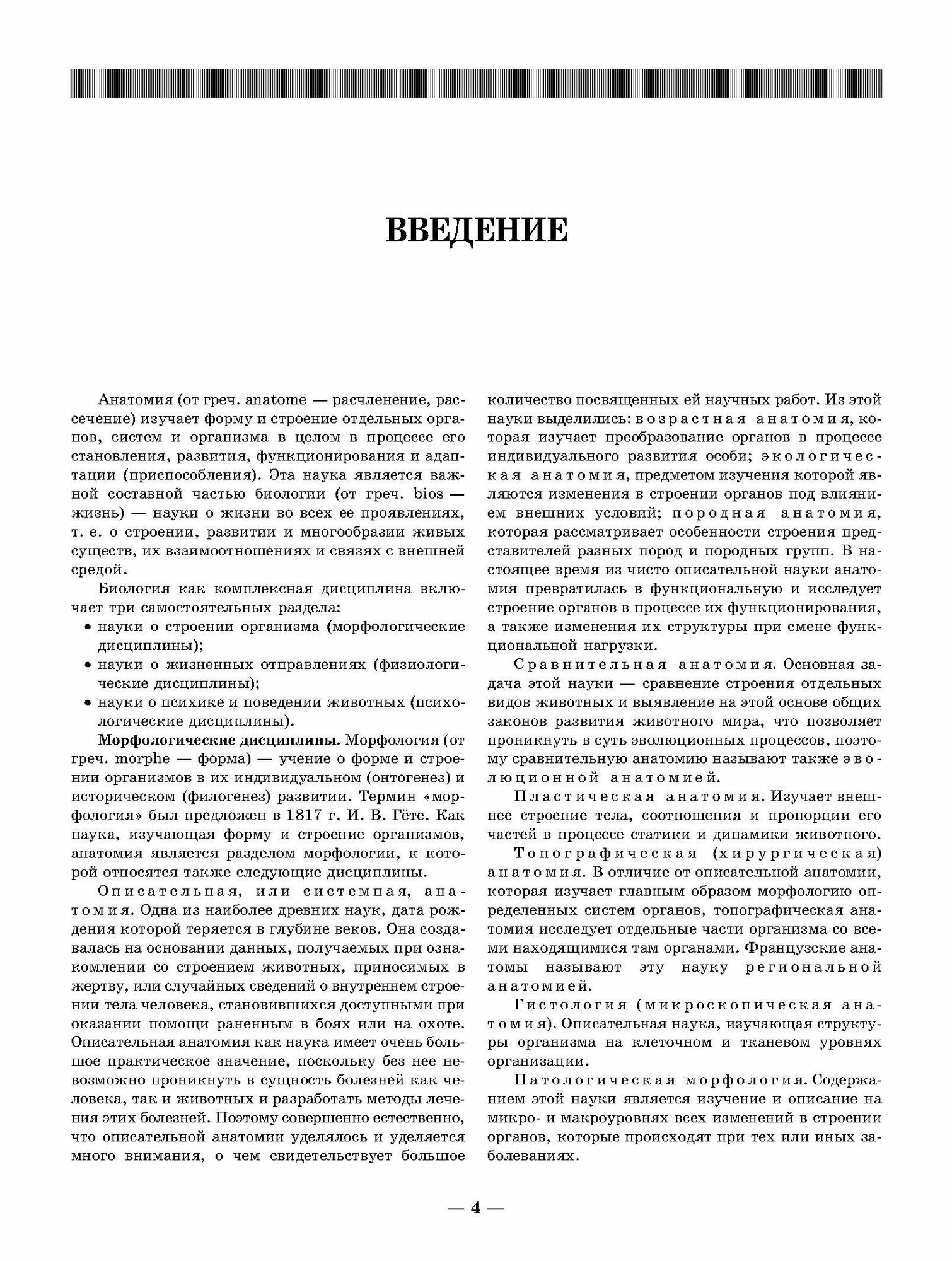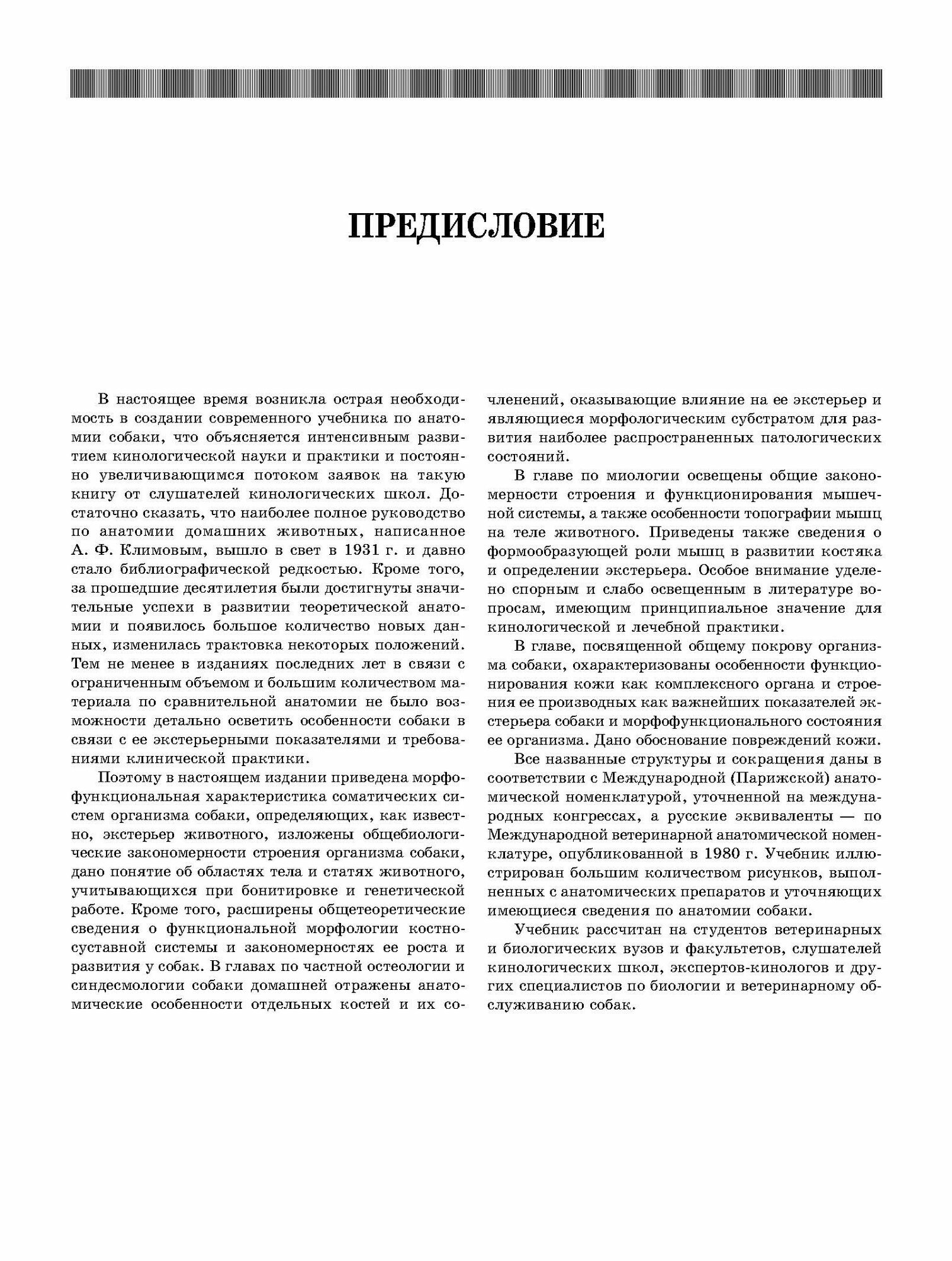 Приведены общебиологические закономерности строения собаки, даны понятия об областях тела и о статях животного, учитывающихся при бонитировке и генетической работе. Освещены общие закономерности строения и функционирования костно-суставной, мышечной и кожной систем. Отражены анатомические особенности отдельных костей и их сочленений, оказывающие влияние на экстерьер, а также топографии мышц на теле собаки.