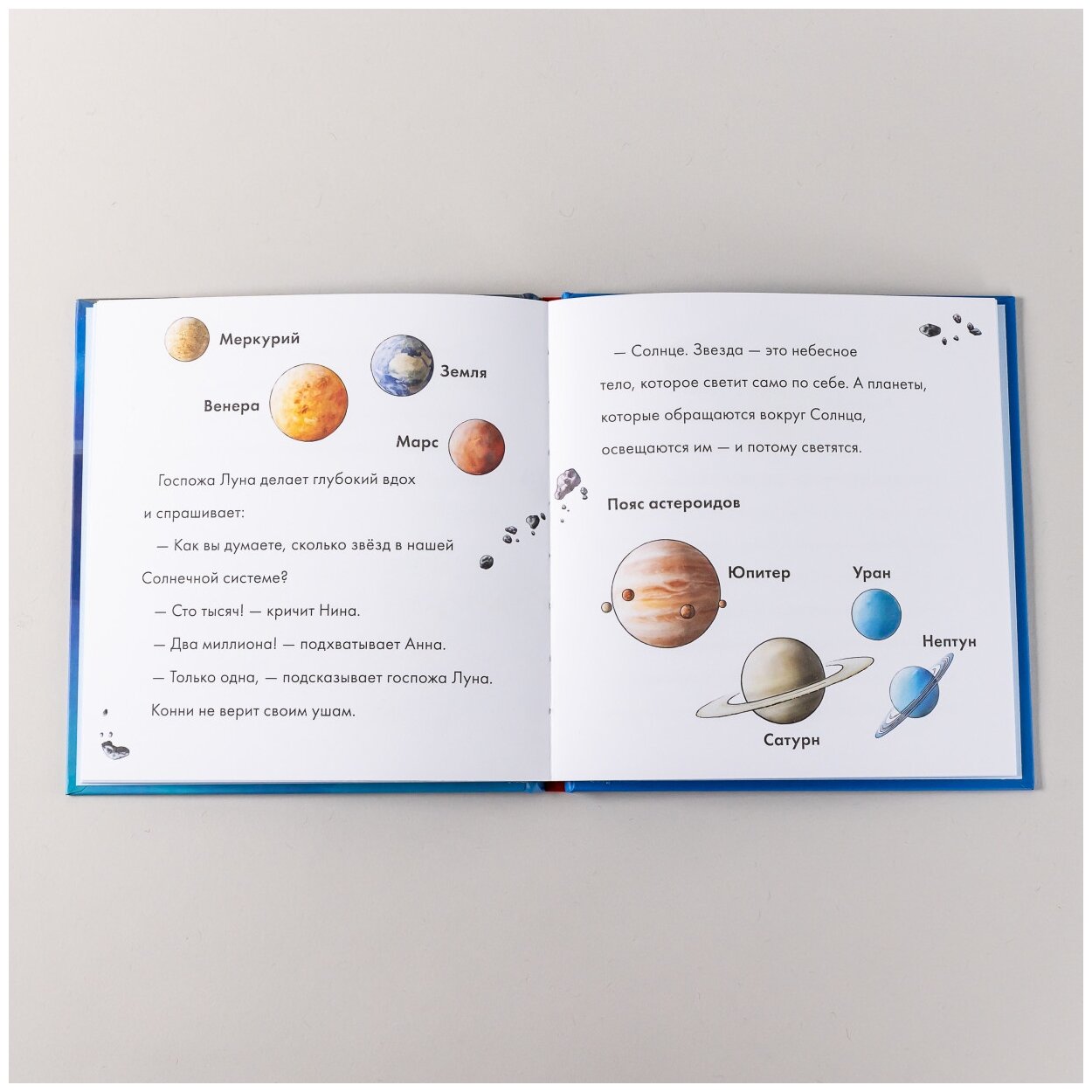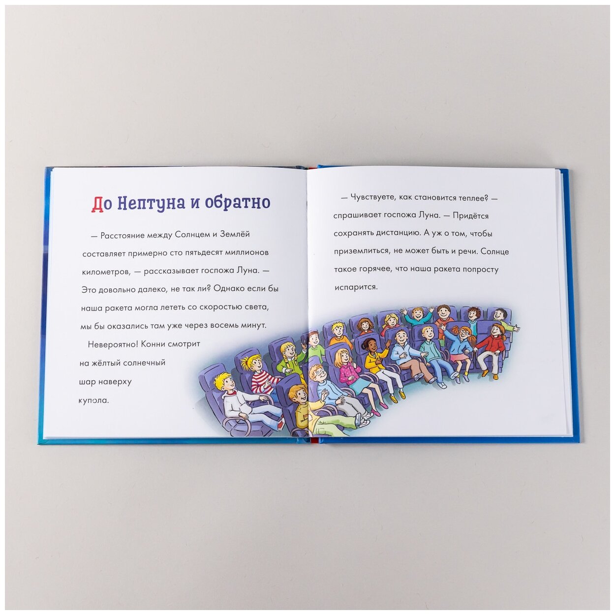 Конни вместе с классом отправляется на экскурсию в планетарий. Три, два, один, пуск! Воображаемая ракета отправляется к звёздам. Вместе с любимой героиней мы посетим спутник Земли — Луну, — все планеты Солнечной системы, а ещё познакомимся с Солнцем. Выполните задания и узнайте, сколько световых часов понадобится, чтобы долететь от Земли до Нептуна какой планеты самые большие и красивые кольца и многое другое.