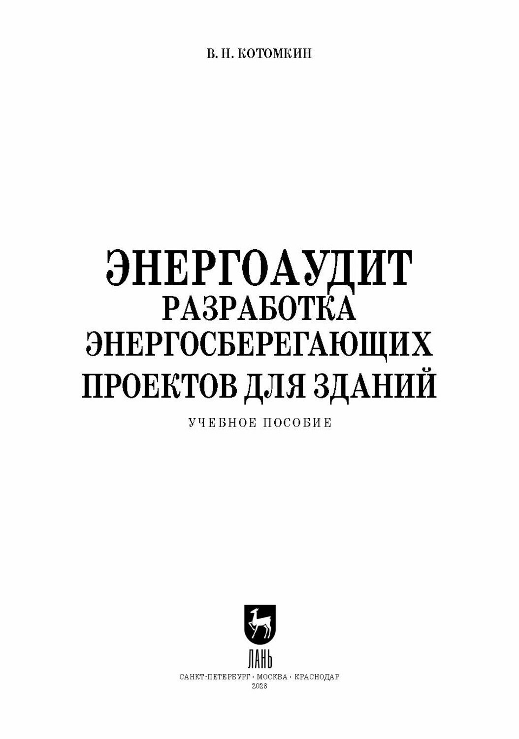 Энергоаудит. Разработка энергосберегающих проектов для зданий. Учебное пособие для вузов (Котомкин Виктор Николаевич); Лань, 2023