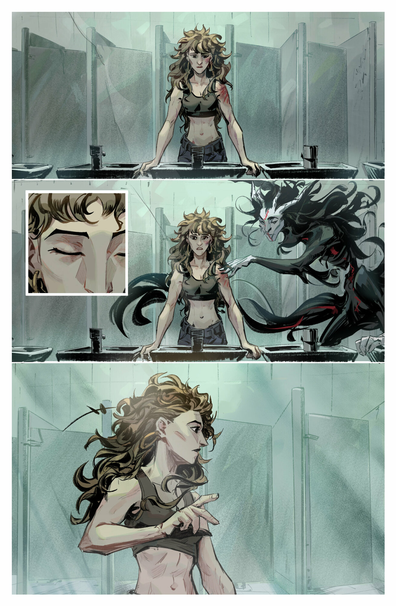 Завязка интригующая, опять же, первые успешные шаги в сторону мистического хоррора. Да и действия происходят в камчатской глубинке, куда мало какие Бесобои и Союзники доберутся, а следовательно, решать проблему гг придётся самостоятельно. Прекрасно вплетён местный фольклор (чертовски интересная и настолько же недооценённая вещь), выбрана невероятно красивая и потрясающе жуткая локация с кладбищем кораблей (оборотная сторона обложки - моя любовь), а стиль рисовки и цвета! На мой взгляд, тандем художницы и сценаристки вышел идеальным.