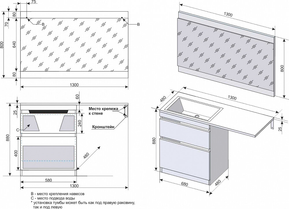 | Шкаф/зеркальный шкаф в комплекте | Нет |