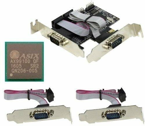 | Прочие особенности и свойства | Чип:ASIX AX99100,Совместимость:16C450/550/Extended 550 UART,Возможность замены стандартных монтажных планок на низкопрофильные (Low Profile Brackets) - приобретаются дополнительно, необходимо 4 шт. |