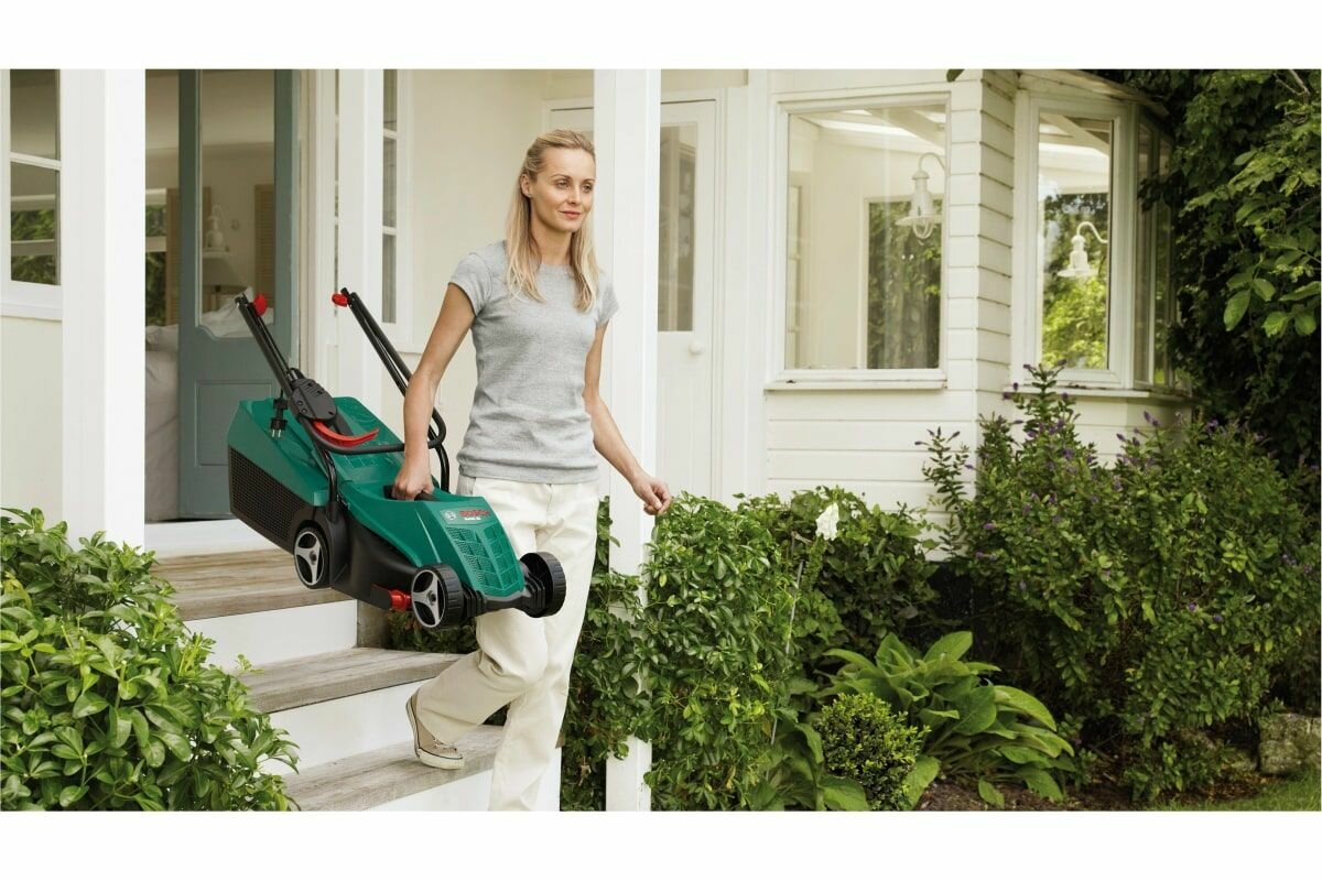 | Прочие особенности и свойства | Электрическая газонокосилка Bosch Rotak 320 ER 06008A600A имеет малый вес., , Несмотря на малые габариты, мощности двигателя хватает для кошения высокой травы., , Благодаря направляющим новой конструкции можно подстригать участки вдоль стен, газоны и грядки с максимальной точностью., , Травосборник оснащен ручкой для удобной переноски. |