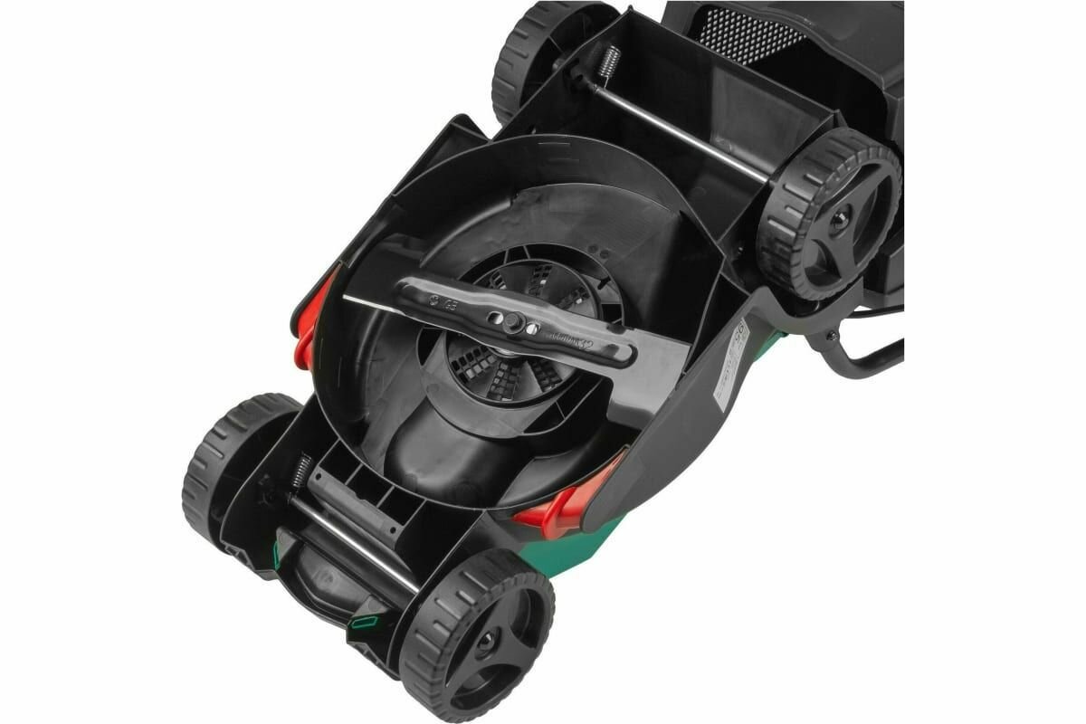 Сбор травы в травосборник емкостью 31 литр. Легкое маневрирование благодаря небольшому весу.