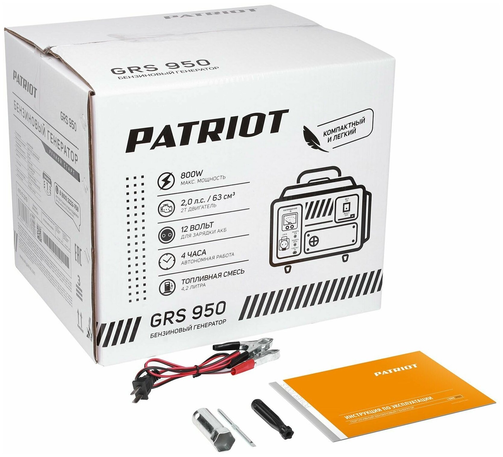 | Комплектация | Генератор Транспортировочная ручка Свечной ключ Отвертка Провода для зарядки АКБ Инструкция по эксплуатации |