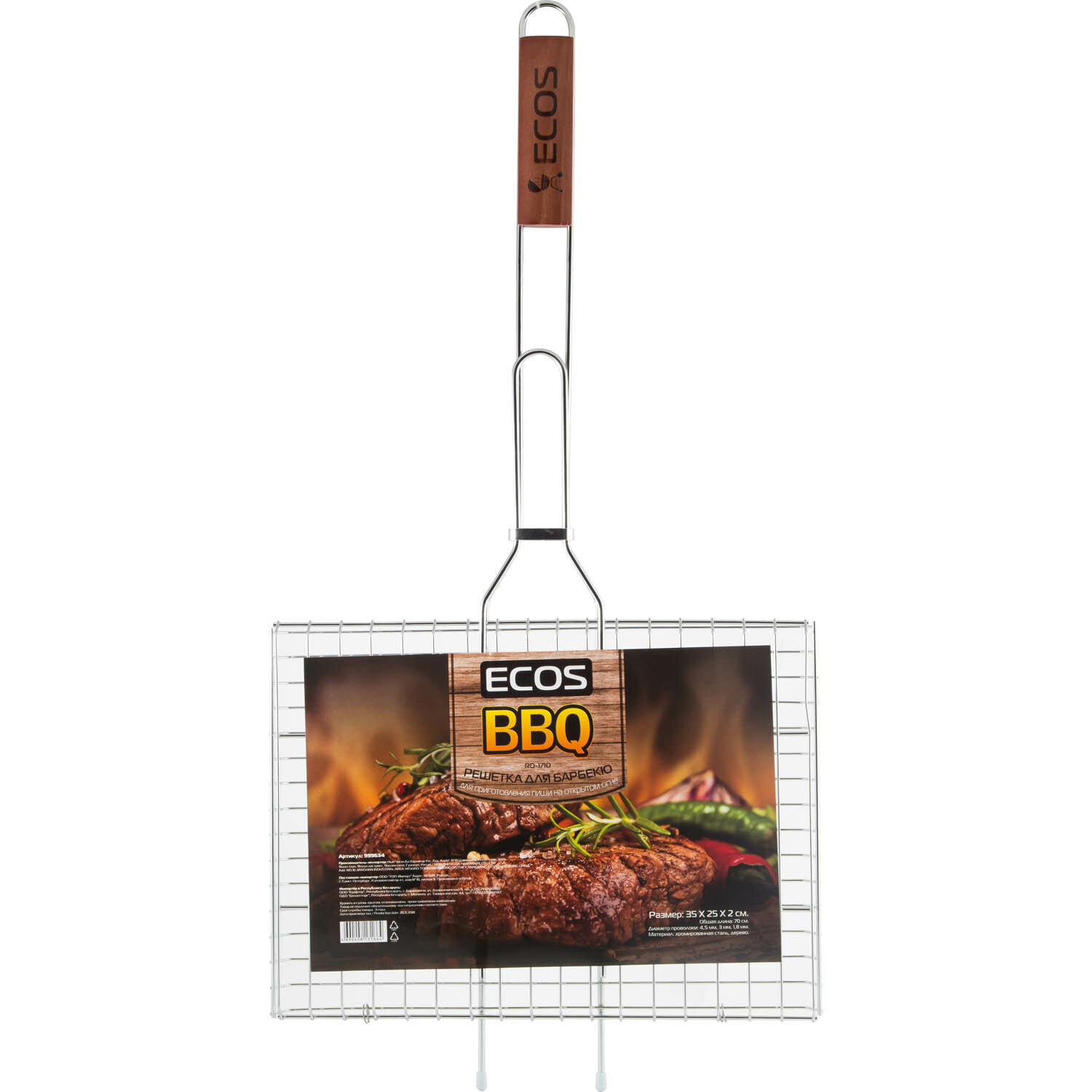 решетка-гриль ECOS 35х25х2см хром.сталь/дер.ручка RD-171D
