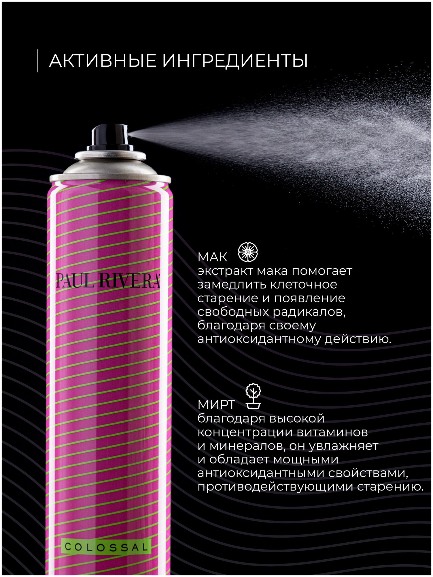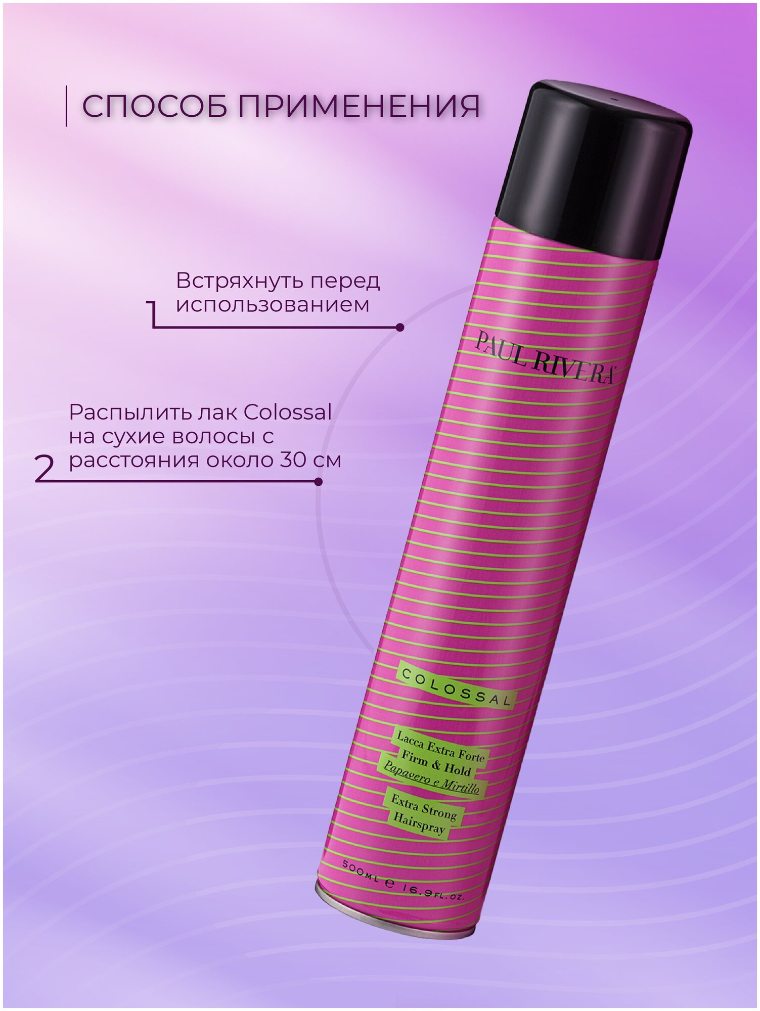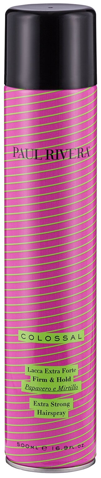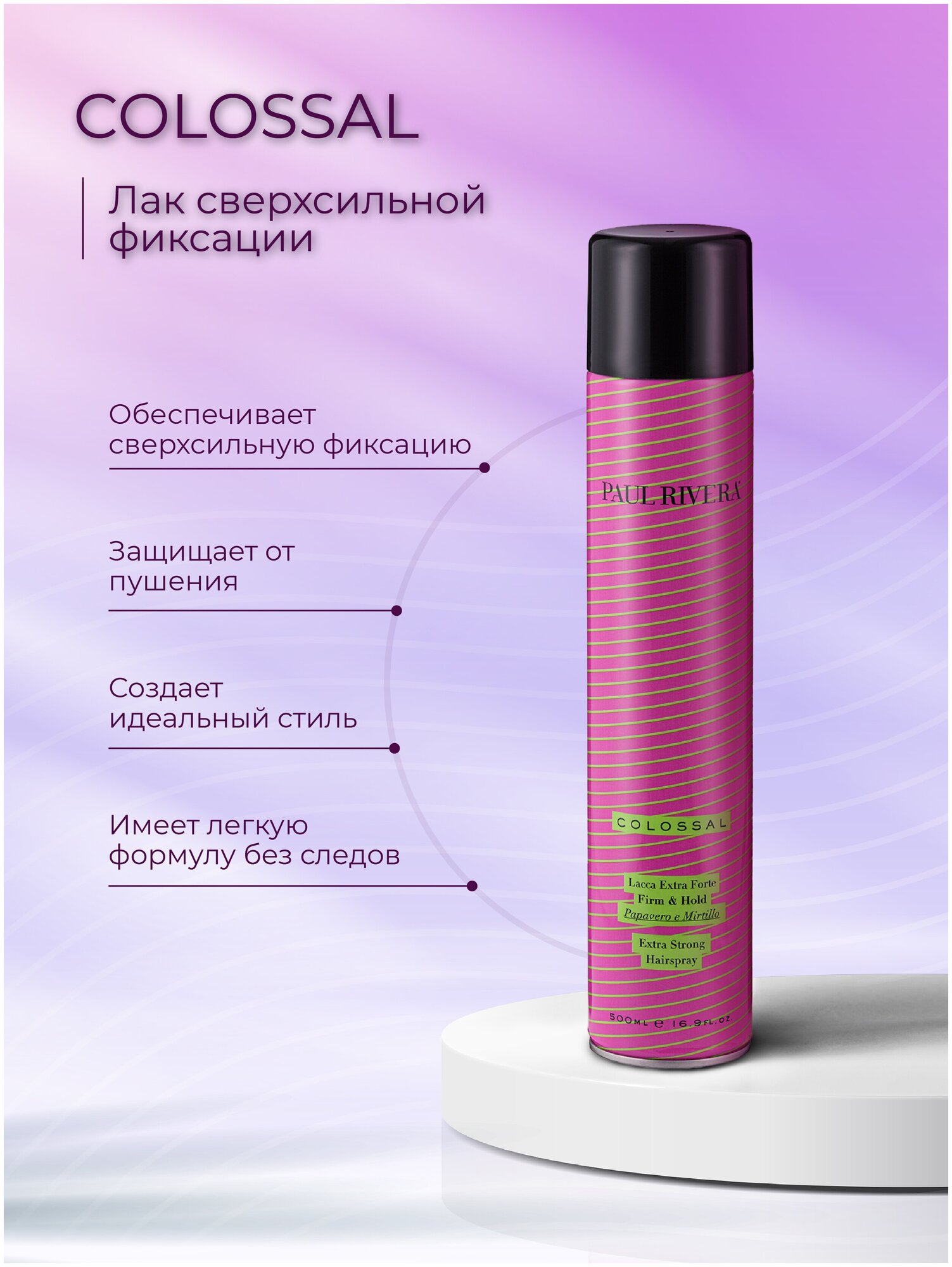 PAUL RIVERA Лак супер сильной фиксации / Colossal Extra Strong Hairspray 500 мл сверхсильной фиксации с экстрактами мака и черники