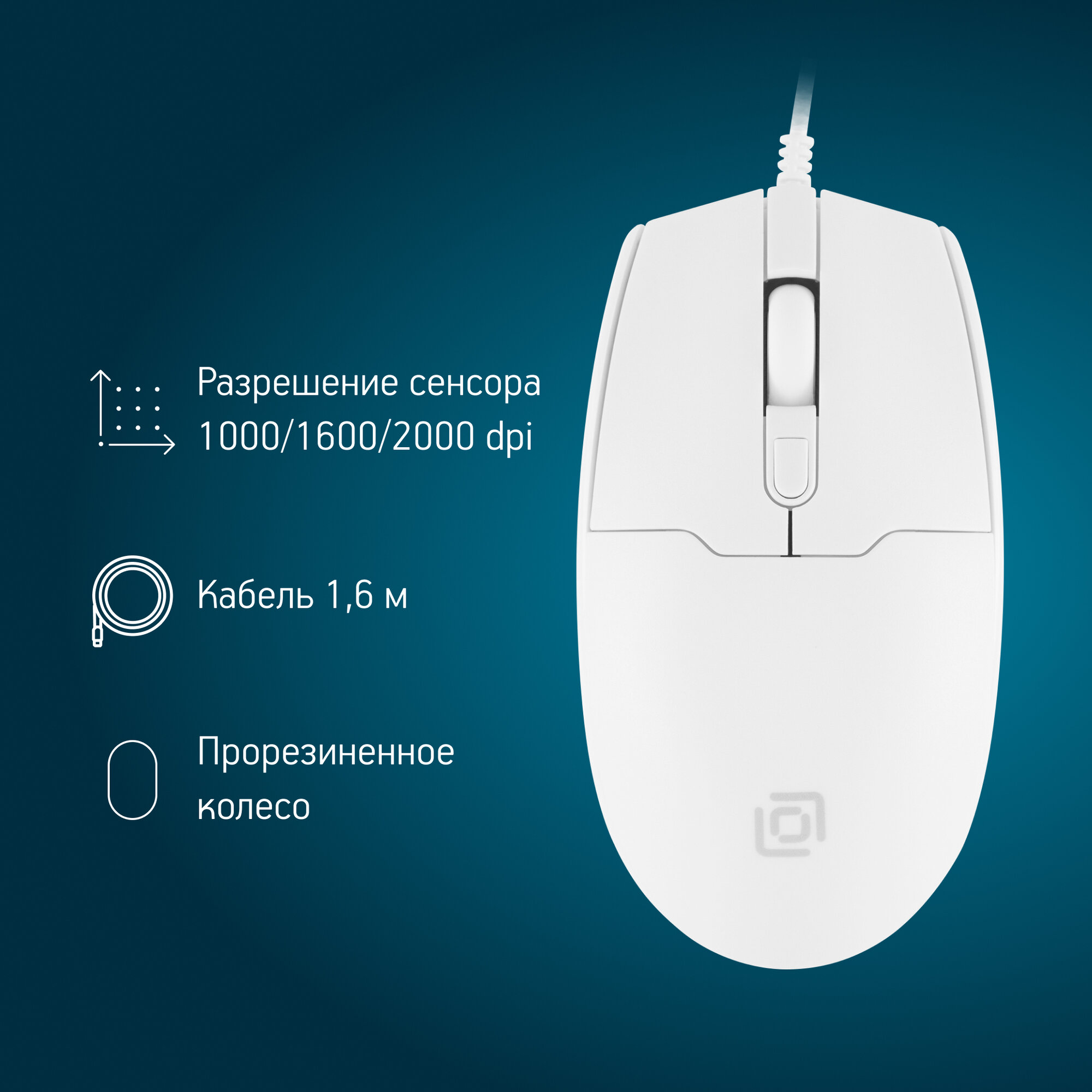 Мышь Оклик 147M белый оптическая (2000dpi) USB (4but)