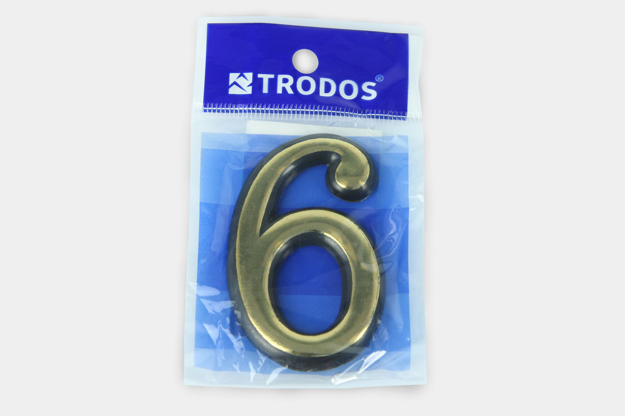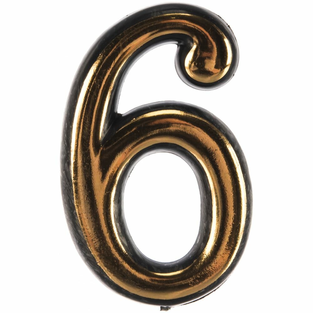 Цифра "6" дверная TRODOS. Цвет - золото, черный. Высота изделия - 50 мм.