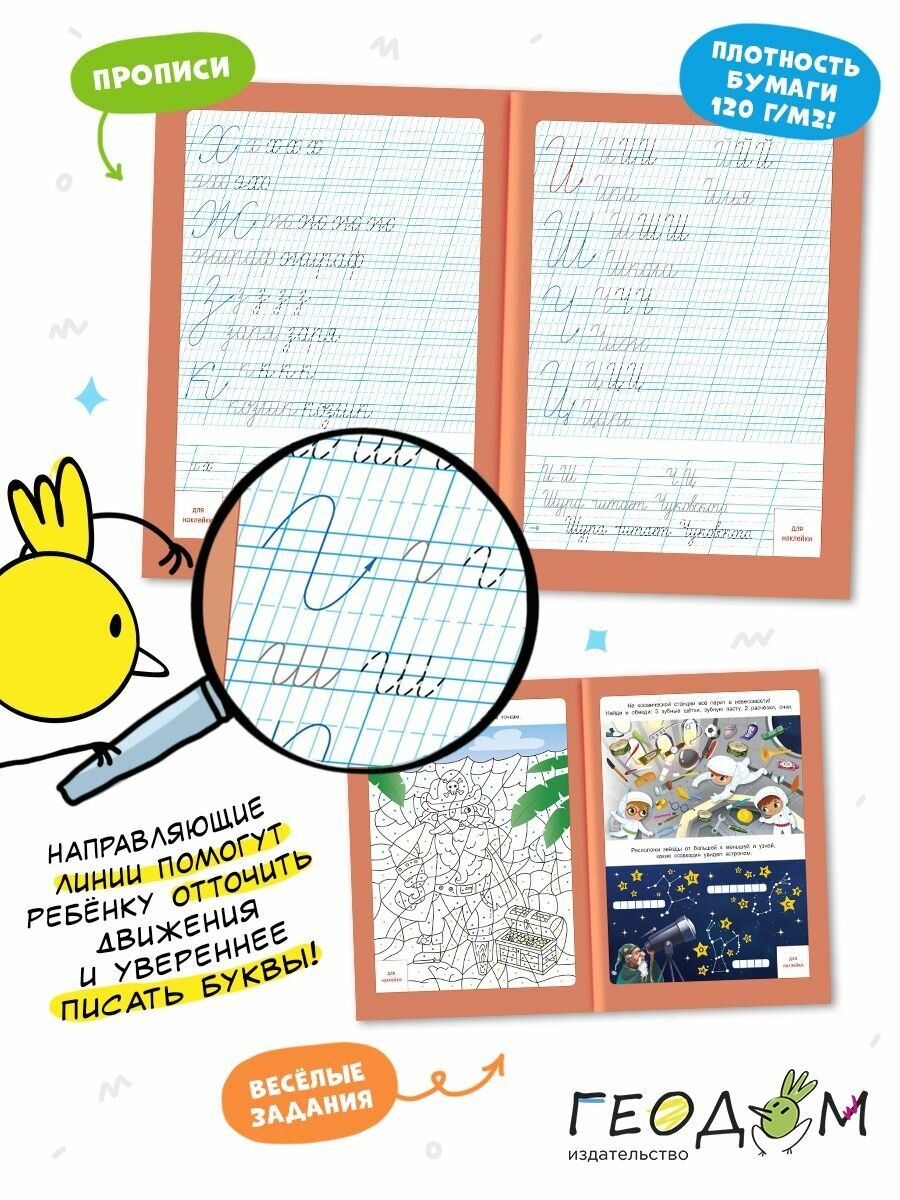 Каллиграфические прописи с весёлыми заданиями и мотивирующими наклейками помогут выработать красивый почерк. На буквах и их элементах есть стрелочки, которые задают направление письма. Обводите, пишите слова по образцу и выполняйте интересные задания вместе с забавными героями. А с мотивирующими наклейками легче достичь блестящего результата - пусть учёба будет в радость!