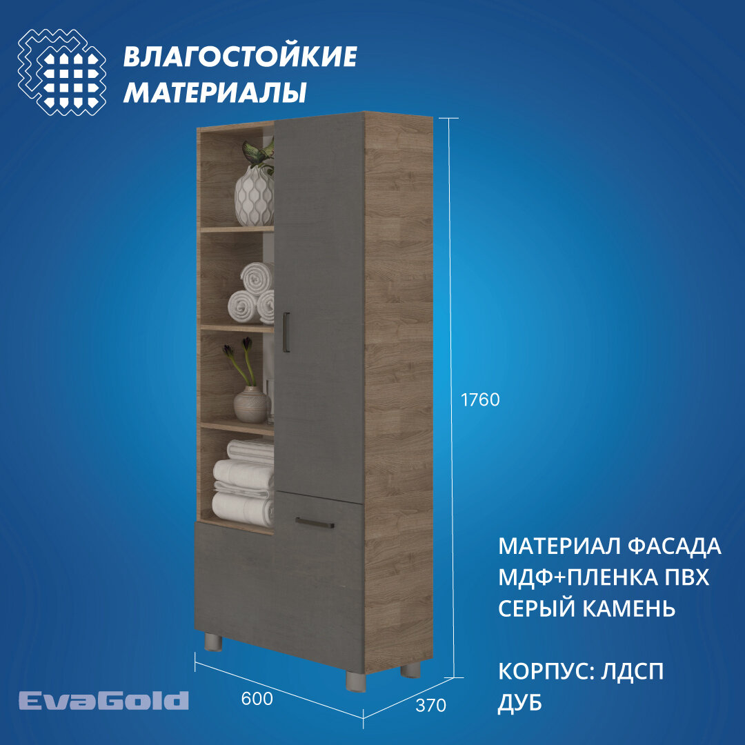 Сервис сравнения цен СкидкаГИД предлагает сравнить цены на товар «Шкаф EvaGold Catherine 60 серый камень для ванной Eva Gold»