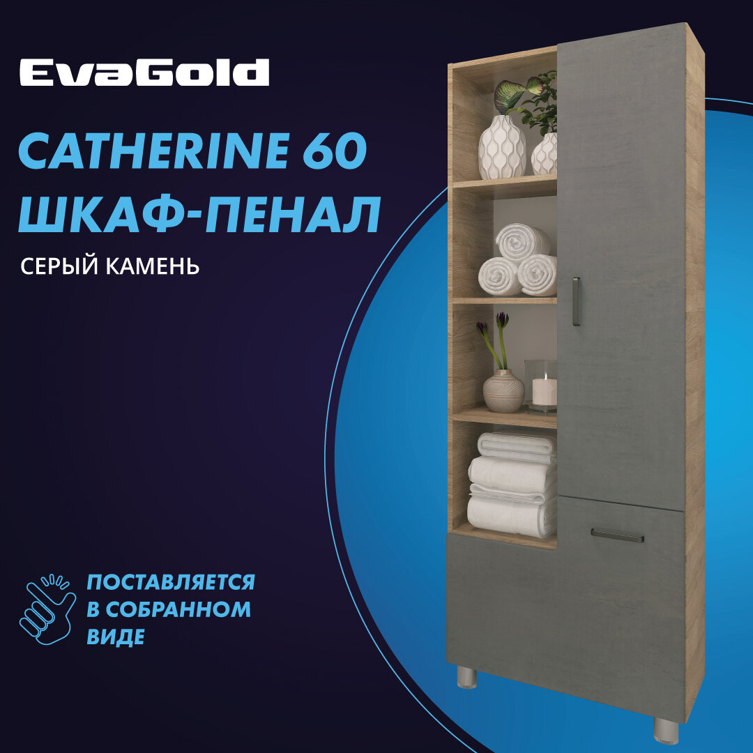 Шкаф EvaGold Catherine 60 серый камень для ванной Eva Gold