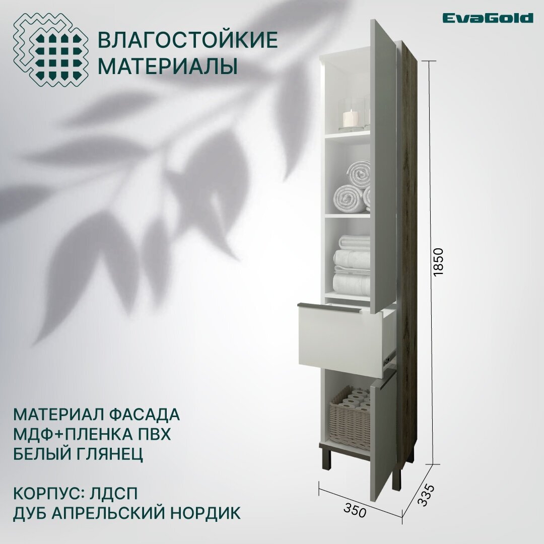 Шкаф для ванной EvaGold Chelsea 35 белый коричневый напольный Eva Gold