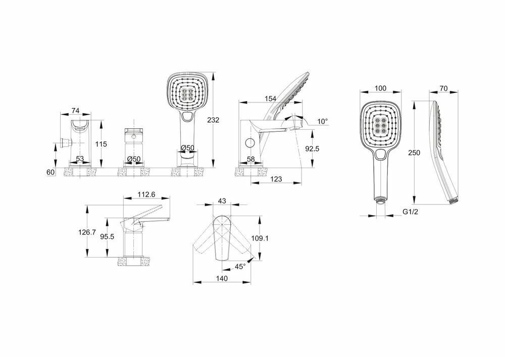 | Тип | смеситель на борт ванны,комплект на борт ванны |