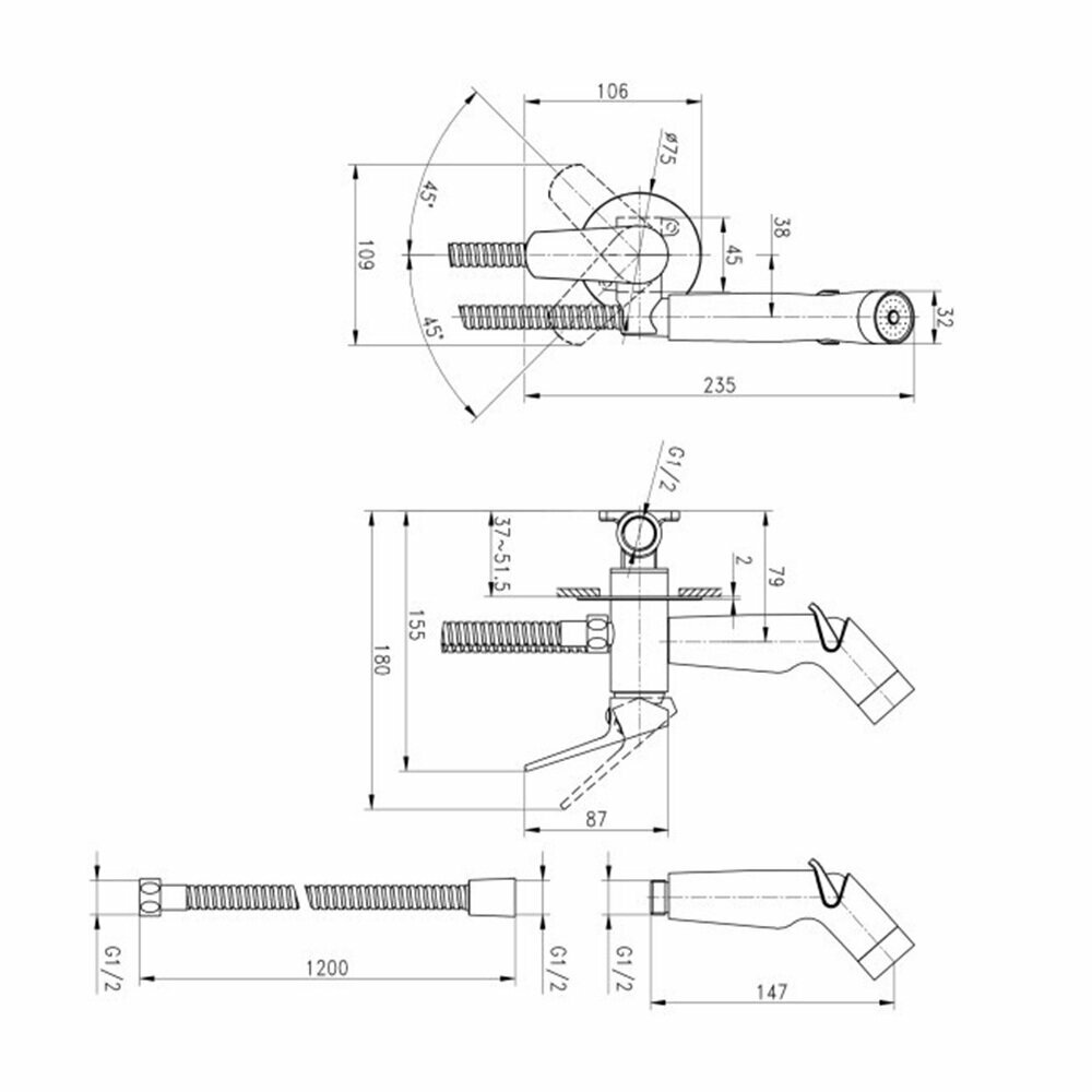 | ВКоробке | Лейка гигиенического душа - 1 шт. Смеситель - 1 шт. Монтажная часть - 1 шт. Шланг - 1 шт. Инструкция - 1 шт. |