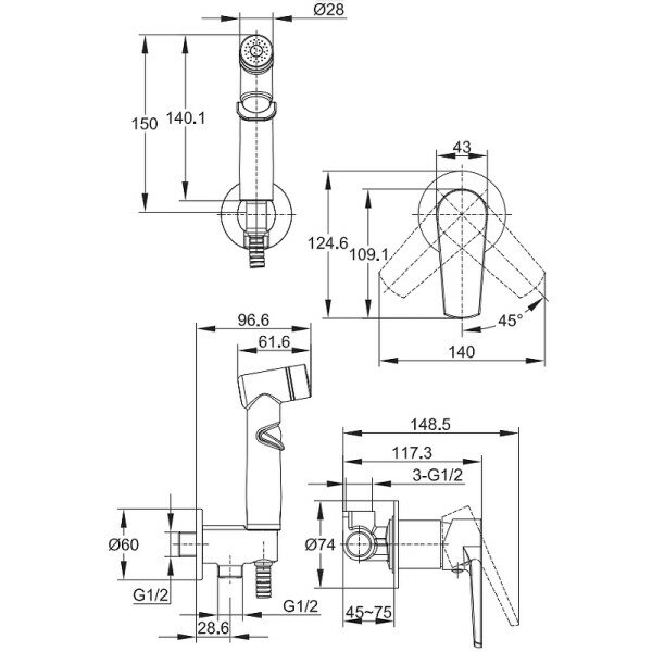 | ВКоробке | Лейка гигиенического душа - 1 шт. Смеситель - 1 шт. Монтажная часть - 1 шт. Шланг - 1 шт. Шланговое подключение - 1 шт. Инструкция - 1 шт. |