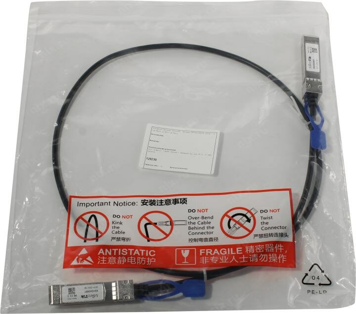 MikroTik - кабель прямого подключения длиной 1 м, который поддерживает не только SFP 1G и SFP + 10G, но и 25G SFP28 стандарт. С новым кабелем прямого подключения вы получаете больше возможностей по той же цене! Это очень экономичный способ подключения двух устройств SFP/SFP+/SFP28 (например, двух маршрутизаторов MikroTik CCR2004-1G-12S+2XS) на очень короткие расстояния, внутри стоек и между соседними стойками. Он обеспечивает низкую стоимость, низкое энергопотребление и решение межсоединений с малой задержкой для 25-Gigabit Ethernet, Fibre Channel и других отраслевых стандартов, а также совместим с прямым подключением и соответствуют спецификациям SFP+ MSA.