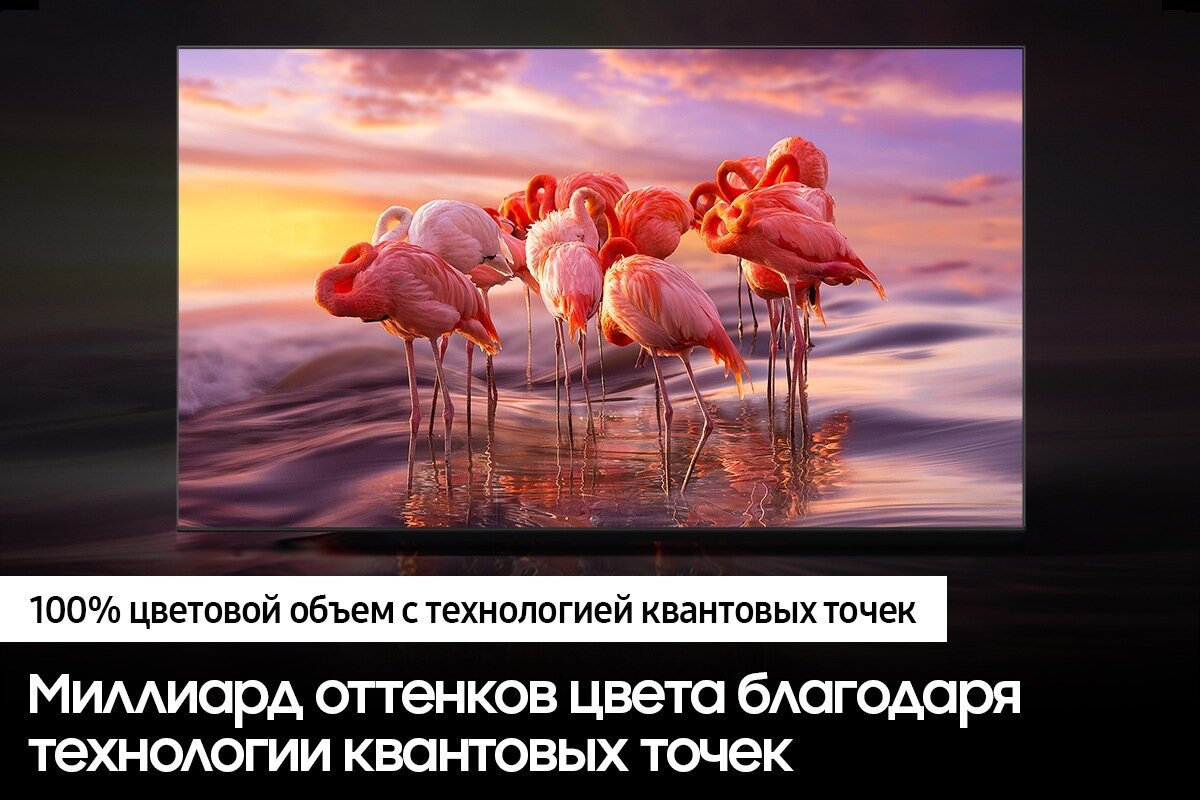 Потрясающе тонкий и уникальный для данной категории дизайн позволит вашему телевизору органично вписаться в интерьер вашей комнаты. Технология Quantum Dot обеспечивает наилучшее качество изображения, недостижимое ранее. Благодаря 100% объему цвета, технология квантовых точек преобразует свет в потрясающую цветовую палитру, качество цветопередачи при этом остается высоким при любом уровне яркости. Инновационная технология подсветки обеспечивает более четкую и точную контрастность за счет оптимизации цветового тона подсветки в соответствии с типом просматриваемого контента. Технология Quantum HDR позволяет выявить мельчайшие детали изображения и обеспечить оптимальную контрастность, чтобы вы получили максимальное удовольствие от просмотра каждой сцены. Благодаря увеличенному диапазону яркости экрана вашего телевизора, вы сможете оценить все богатство цветовой палитры и великолепную видимость деталей даже в самых темных и светлых сценах. Мощный процессор Samsung оптимизирует качество звука в зависимости от просматриваемого контента. Благодаря технологии мас шт.абирования до 4K, вы сможете смотреть любимый контент в разрешении 4К. Объемный 3D-звук с нашим виртуальным верхним каналом звука позволит вам полностью погрузиться в происходящее на экране.