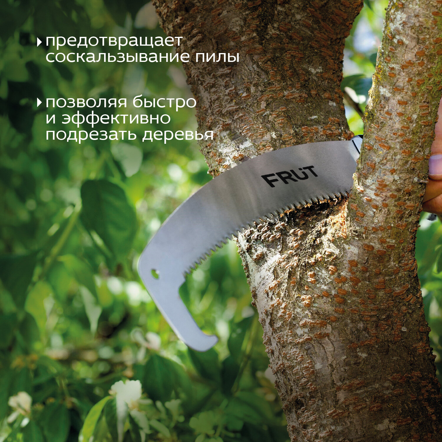 Садовая пила по дереву с ограничителем FRUT предназначена для подрезки веток и формирования кроны деревьев. Трапециевидный зуб позволяет выполнить распиловку как вдоль, так и поперек волокон. Крюк-ограничитель, предотвращает соскальзывание пилы позволяя быстро и эффективно подрезать деревья. Анатомическая ручка обеспечивает удобный захват, а отверстие внутри позволяет установить штангу. Полотно изготовлено из высококачественной стали MN65, которая способна сохранять высокие эксплуатационные свойства в течение длительного периода времени.