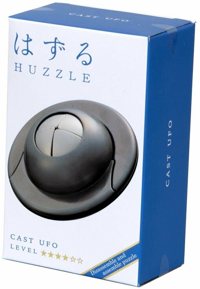 Hanayama Huzzle Cast UFO 4 ур. (Ханаяма Хазл Каст НЛО)Головоломки фирмы Hanayama уникальны, в них скрыто оригинальное решение, которое вам нужно найти. Это интересная головоломка, потому что не похожа на другие.Инопланетный корабль состоит из четырех центральных элементов и двух внешних колец. При этом все детали отличаются друг от друга. Вам нужно будет понять, в чем заключаются отличия, чтобы приблизиться к ответу.Даже если вы знаете, как разобрать этот инопланетный корабль, придется потратить некоторое время. А если вы еще не успели разгадать загадку, решить ее будет непросто. Это классный пазл, с ним можно играть даже когда знаешь решение.Это качественный продукт, который будет круто смотреться в коллекции. Когда берешь головоломку в руки, сразу понимаешь, за что ценители любят фирму Ханаяма: они продумывают мелочи и создают идеальные пазлы.