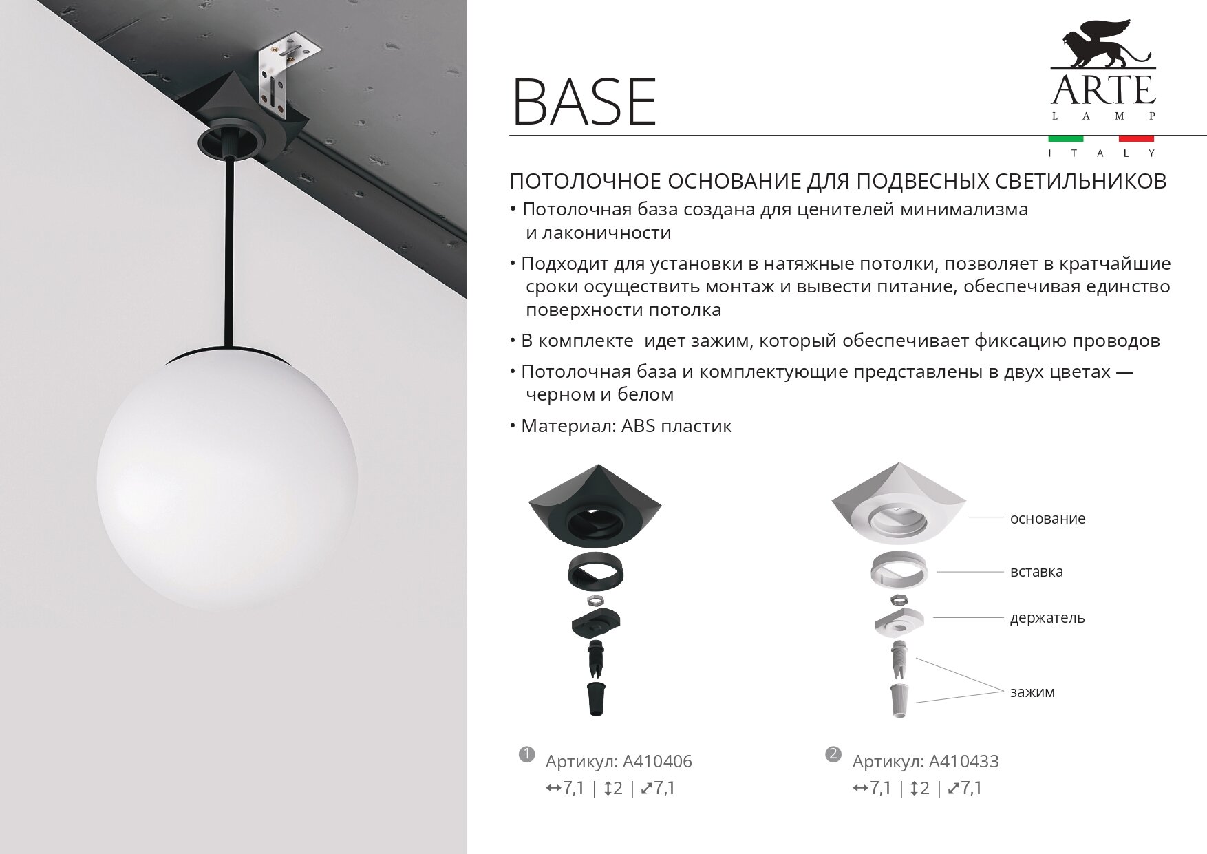 Основание для подвесных светильников Arte Lamp BASE A410406