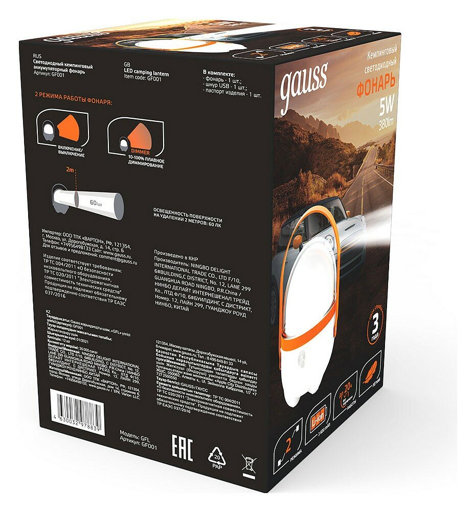 На сегодняшний день товар «Кемпинговый фонарь Gauss GF001 GFL001» можно купить с кешбеком в 2 магазинах: donplafon, Яндекс.Маркет