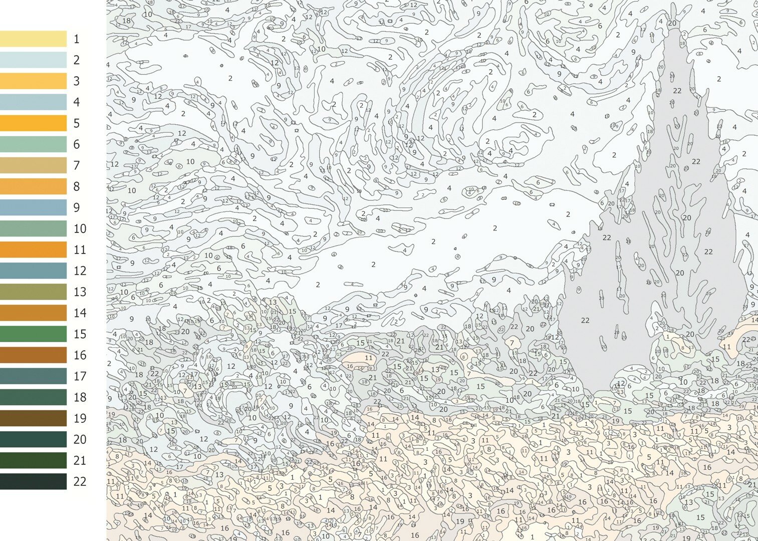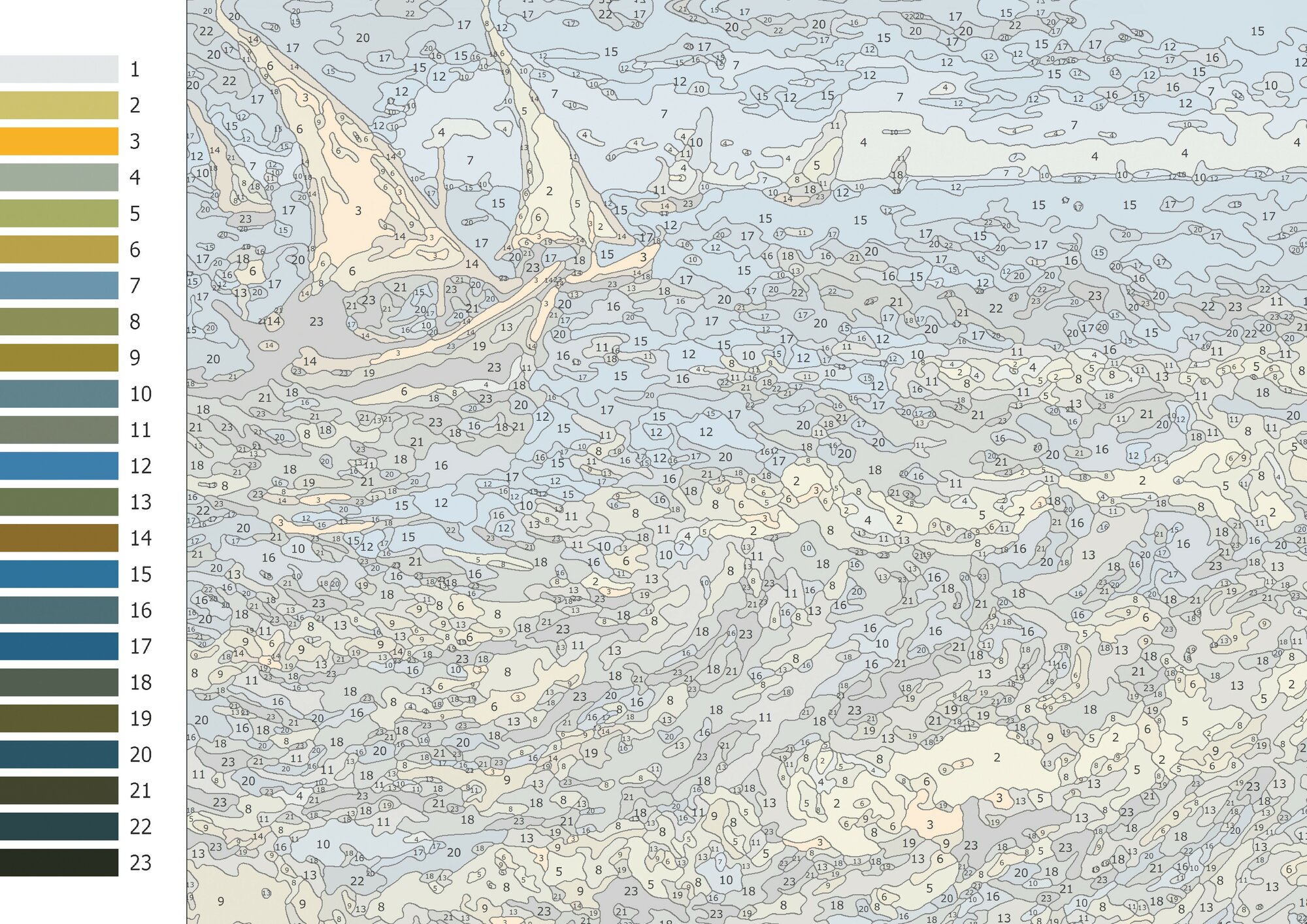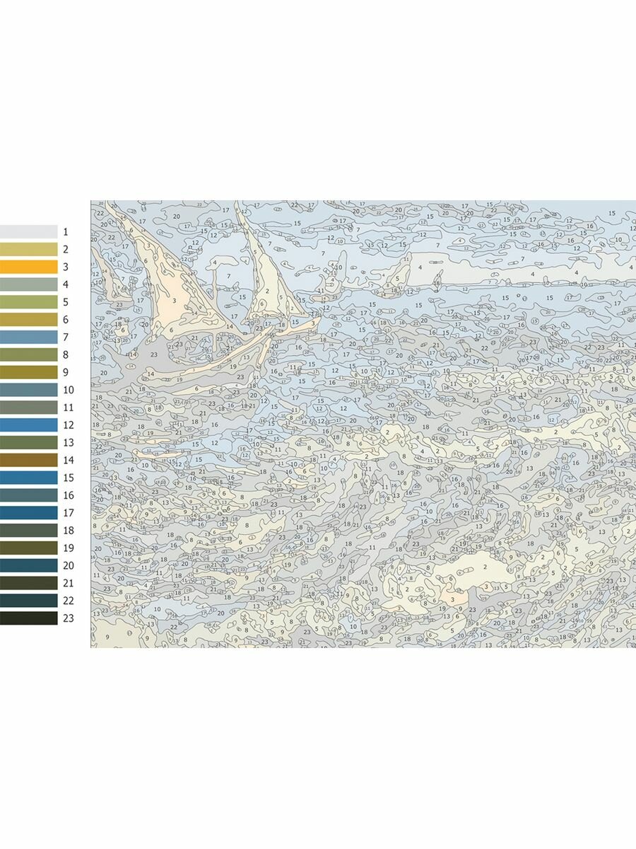 Обычное раскрашивание картин по номерам, когда надо последовательно находить и тщательно закрашивать все участки сначала одним цветом, потом другим, подходит только очень усидчивым людям. Мы же предлагаем свободный вариант, когда возможен и даже приветствуется отход от строго указанных оттенков и границ участков. Для облегчения понимания идеи автора и общего колорита картины на раскраске присутствуют легкие тона основных красок. Вы можете их придерживаться, а можете и сделать по-своему. Получится оммаж (от фр. hommage - признательность, дань уважения).