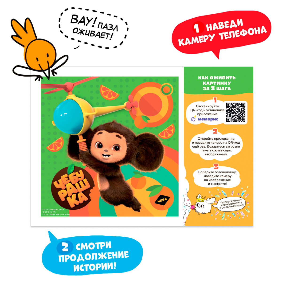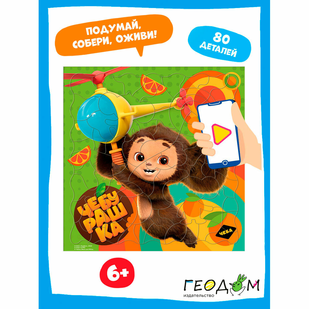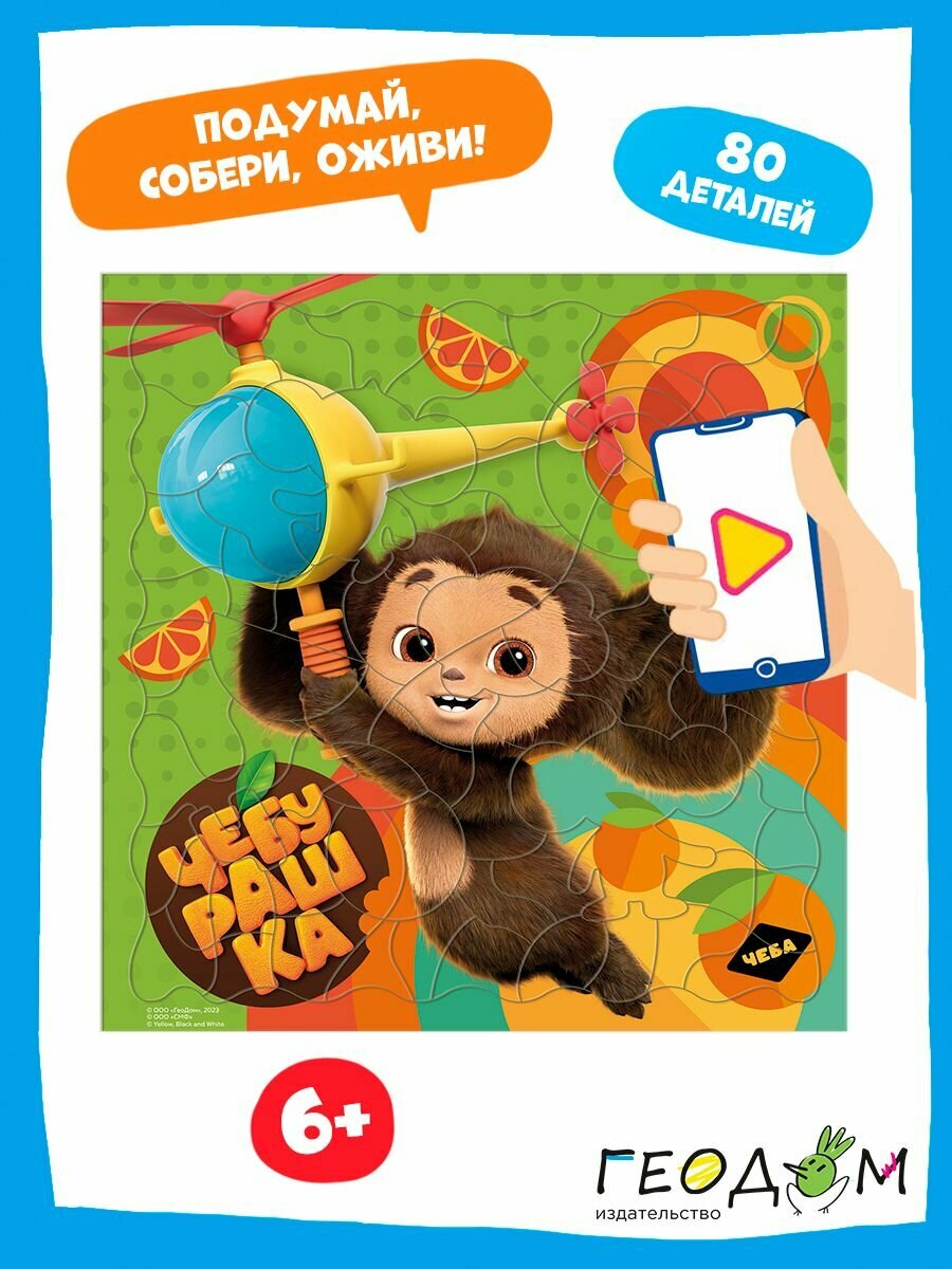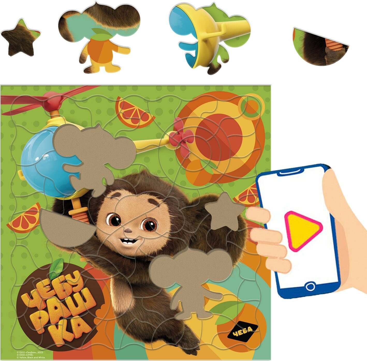 Фигурный пазл с любимым героем Чебурашкой - теперь с дополненной реальностью! Найди все фигурные элементы, собери пазл - и картинка со звуком оживёт в твоём телефоне. Весёлый Чебурашка и другие герои фильма - уже ждут! Фигурный пазл для детей тренирует мелкую моторику, внимание, память и способствует развитию образного мышления.