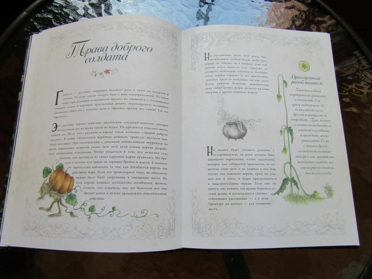 Бомбическая по красоте книга! Оформление продумано до мелочей. Сначала покупала книгу в подарок подруге, которая увлекается историей ведьм и магией, но книгу настолько приятно держать в руках, что также купила ее себе. Рецептами из книги пользоваться не собираюсь, но почитать про средневековые верования очень интересно))