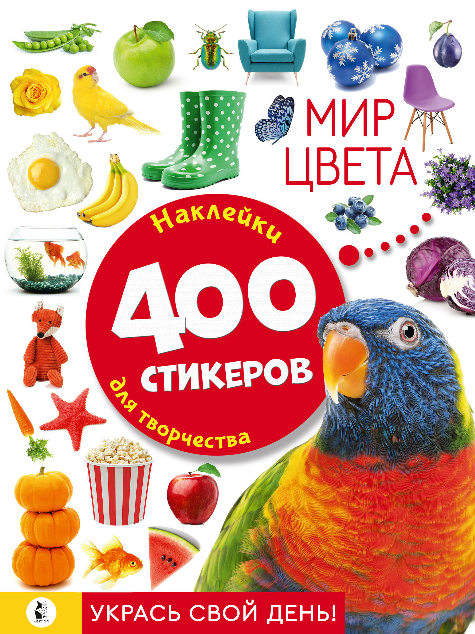 В нем тебя ждут 400 наклеек с самыми яркими предметами, животными, вкусностями и растениями со всего мира. Ты сможешь украсить ими свою комнату, личный дневничок или обмениваться ими со своими друзьями.