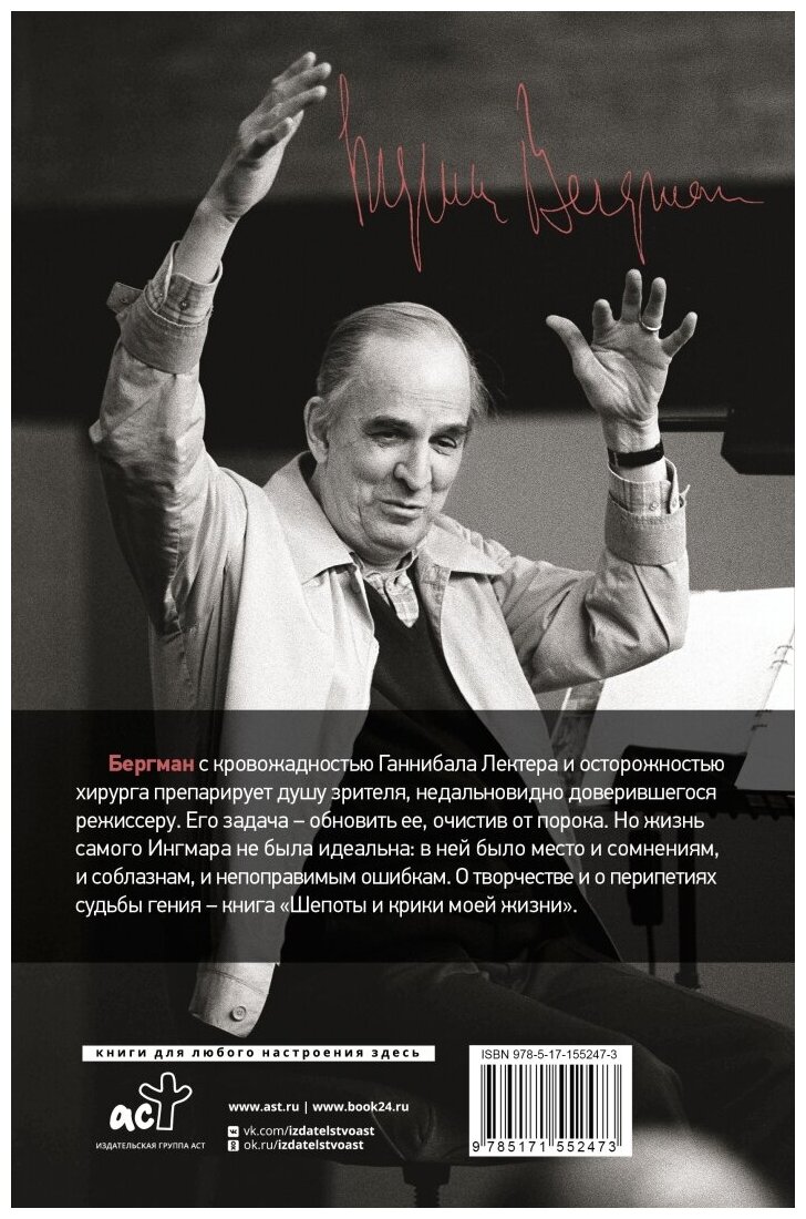 На сегодняшний день товар «Книга: Шепоты и крики моей жизни (Бергман Ингмар); ИЗДАТЕЛЬСТВО "АСТ", 2023» можно купить с кешбеком в 4 магазинах: book24, Буквоед, Onliner BY, Читай-город
