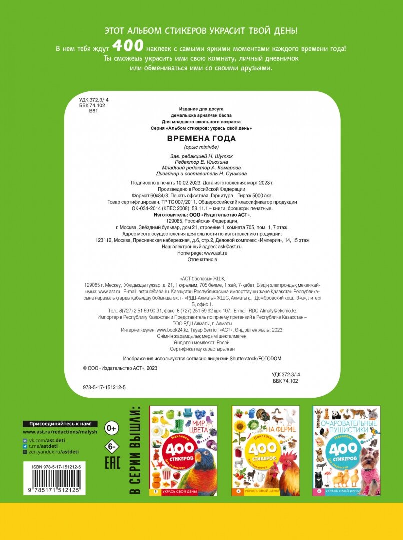 В нем тебя ждут 400 наклеек с самыми яркими моментами каждого времени года! Ты сможешь украсить ими свою комнату, личный дневничок или обмениваться ими со своими друзьями.